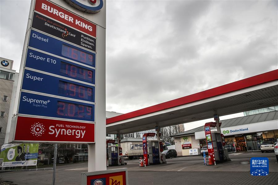这是2月25日在德国法兰克福拍摄的一家加油站屏幕上显示的油品价格。 随着乌克兰局势骤然升级,欧洲股票、外汇、大宗商品等市场24日大幅震荡,油气市场价格更是出现巨幅波动。 新华社发(阿曼多·巴巴尼摄)