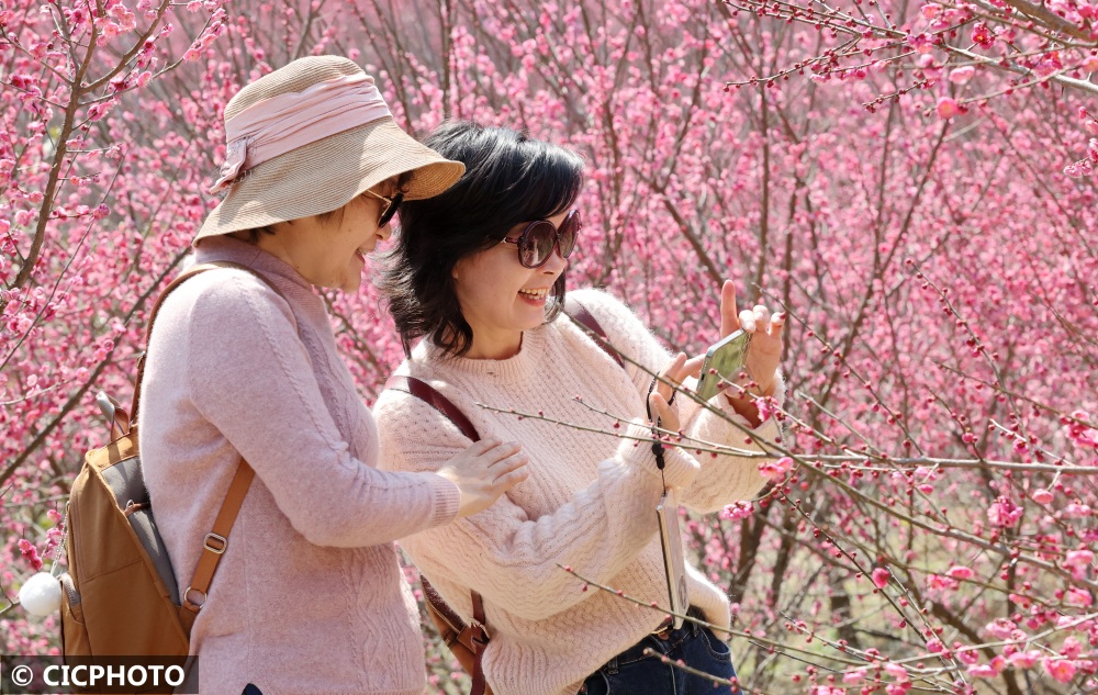 初春时节,浙江省湖州市德清县下渚湖街道上杨村百亩梅花园内的美人红、红梅、紫梅等不同品质的梅花竞相开放,游客徜徉花海,感受春日的美好。近年来,下渚湖街道不断调整农业产业结构,通过“强村公司+集体经济+村民入股”的模式,打造赏花经济与特色农业、研学旅行等多业态融合,不断丰富乡村旅游内容,促进农旅融合发展,助力乡村振兴和共同富裕。