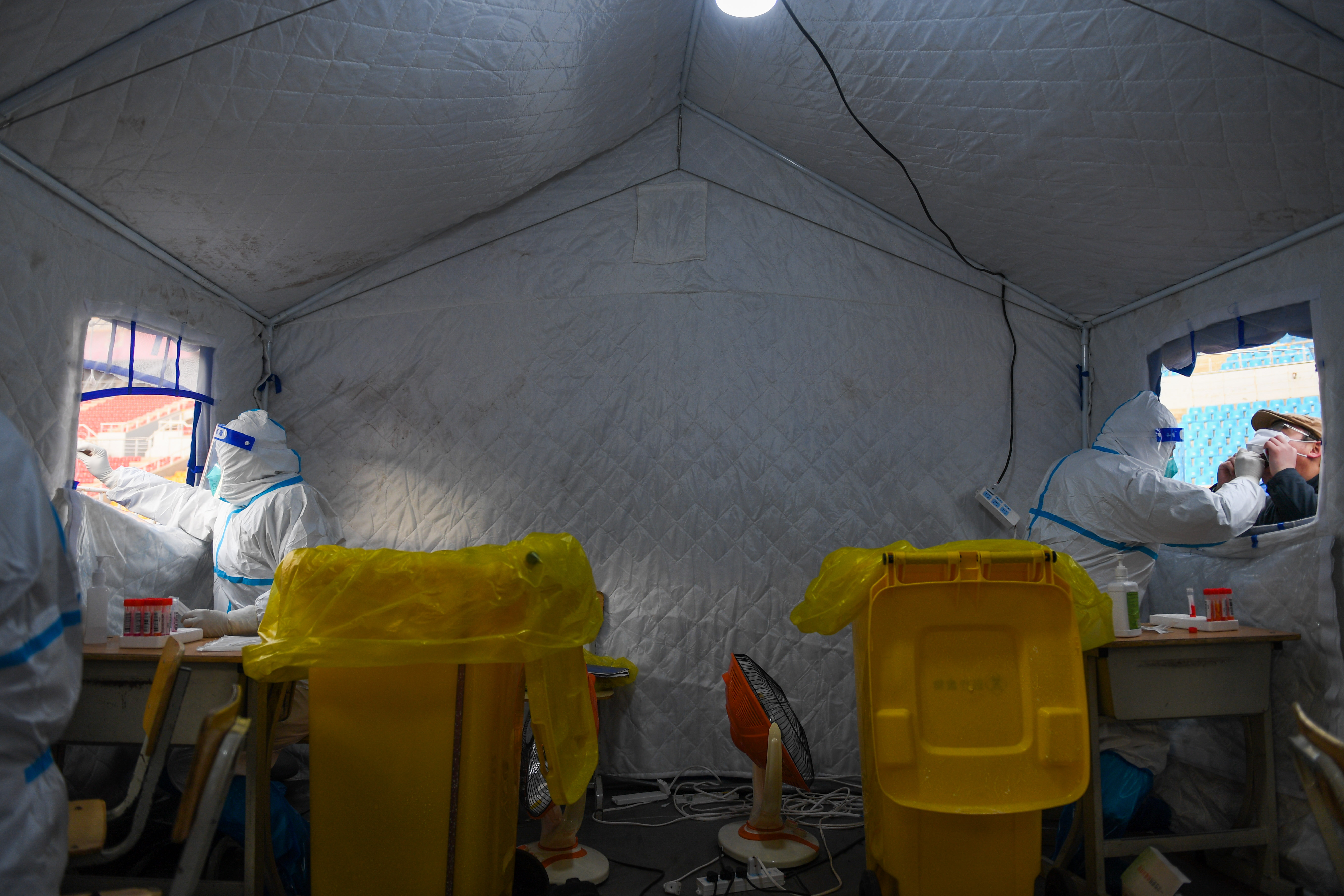 新华社照片,呼和浩特,2022年2月28日 呼和浩特市开展第十轮核酸检测 2月28日,工作人员在呼和浩特市体育场进行核酸检测采样。 2月28日7时起,内蒙古呼和浩特市开展第十轮核酸检测工作。呼和浩特市托克托县、和林格尔县、清水河县暂不参加第十轮核酸检测。 新华社记者 刘磊 摄