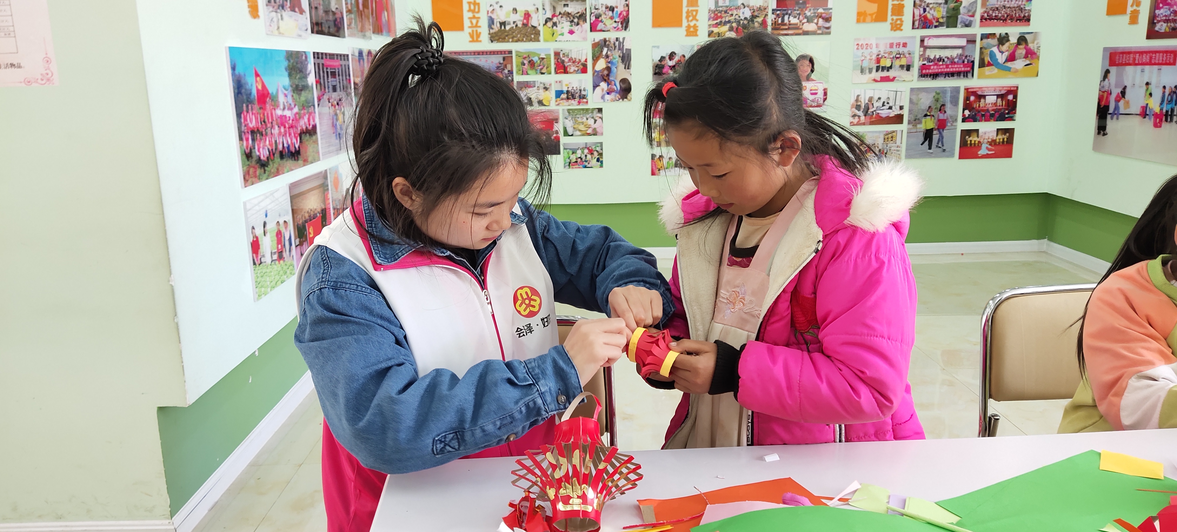 云南会泽新城妇联项目点的志愿者正教授孩子做手工艺品。(受访者供图)