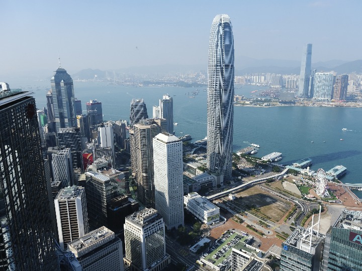 香港中环拍摄的维多利亚港两岸。新华社记者 王申 摄
