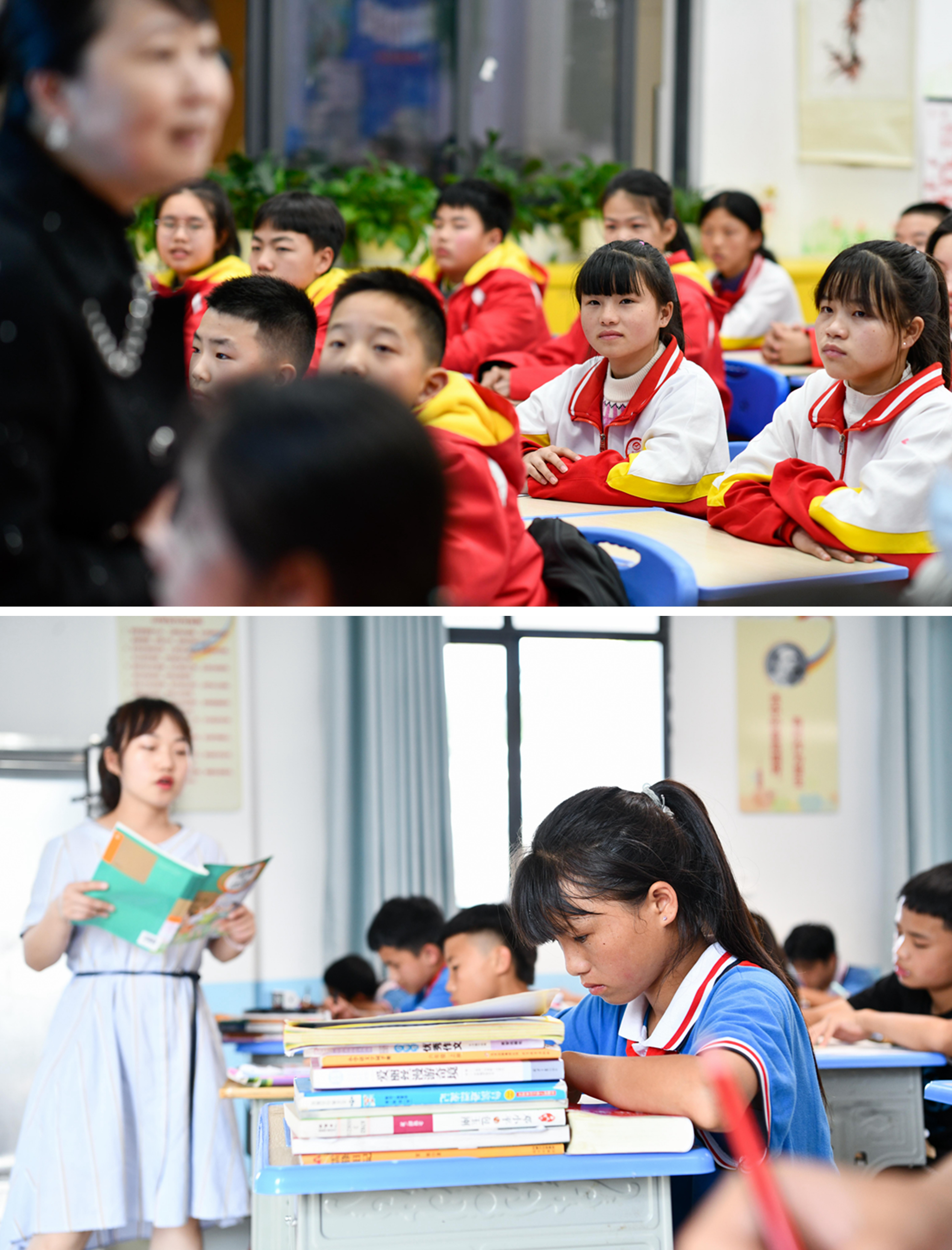 新华社照片,贵州,2022年3月1日 雪菲有梦 未来可期——苗族女孩出山上学记 拼版照片:上图为潘雪菲与同学们在贵阳南明区李端棻中学的教室里听老师讲课(2022年2月27日摄);下图为潘雪菲在从江县丙妹镇大歹小学上课(2021年6月24日摄)。 新学期开始,静谧了一个寒假的贵阳南明区李端棻中学再次喧闹起来。阳光透过自习室的窗户,洒在七年级学生潘雪菲和同学们身上,让人倍感温暖。 潘雪菲是来自贵州省黔东南苗族侗族自治州从江县丙妹镇大歹苗寨的苗族女孩。上小学时,因村民的观念保守,加上村里的生活条件和上学环境艰苦,潘雪菲曾一度辍学近一年时间。 近年来,潘雪菲见证了苗寨教育的变迁。随着各级各部门的倾情帮扶,大歹小学换了全新的教学楼,乡村道路全部硬化,苗寨的居住环境焕然一新,村民对女孩教育也越来越重视。2021年秋天从大歹小学毕业后,潘雪菲得到贵州省纪委监委、贵州省教育厅等部门的结对帮扶,与村里的其他9名孩子一起,来到省城贵阳上中学。 潘雪菲的梦想是做一名乡村老师。她想再回到苗寨,给山里像她一样的孩子传授文化知识,帮助他们走出大山,逐梦未来。 新华社记者 杨文斌 摄