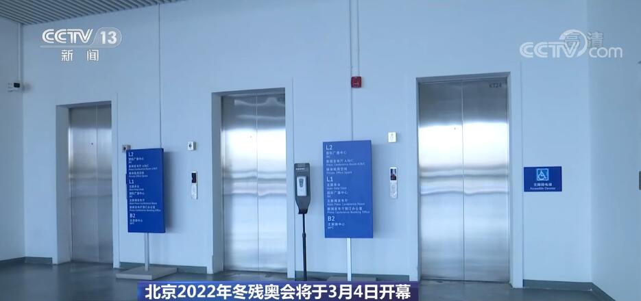 目前,主媒体中心的无障碍卫生间和电梯已经调试完毕,并且正式投入使用。地下一层的媒体餐厅也为残障人士留出了专门的区域,设置无障碍座席,供残障人士用餐。北京冬残奥会期间,主媒体中心将继续举行各项新闻发布会,配合残疾人记者和残疾人运动员的需求,对发布厅也进行了配套改造,届时会方便乘坐轮椅的残障人士通过无障碍坡道顺利地进入到发布平台。