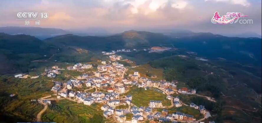 跟随镜头,我们来到福建厦门的同安区,这里的传统古村落:白交祠村,上千株依山势而种的高山樱花,正迎春怒放,生机勃勃,远远望去,如云似锦,与层层翠绿的茶山梯田相映成趣。