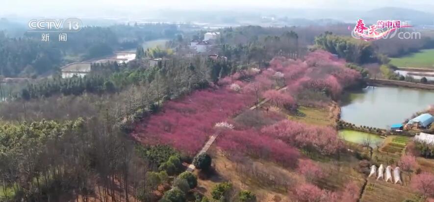 春日晴好,正是赏花时节。现在,我们看到的是安徽铜陵天门镇的梅园。怒放的梅花在初春阳光的温暖呵护中,展现出了美好的身姿,远望如轻轻软软的红霞锦缎铺陈在山野乡间,近观一枝枝疏影横斜一团团姹紫嫣红争相斗艳。游客置身其中,暗香拂面、沁人心脾。这里的近万株梅花,有红梅、白梅、绿梅、黄梅等110多个品种正在陆续绽放,吸引了众多踏青赏花的游客。近年来,当地发掘乡村优美田园风光资源,推进农业、林业与旅游等产业深度融合,促进农民增收,为乡村振兴注入新活力。