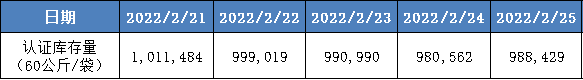 表2:ICE(纽约)“C”型咖啡认证库存量