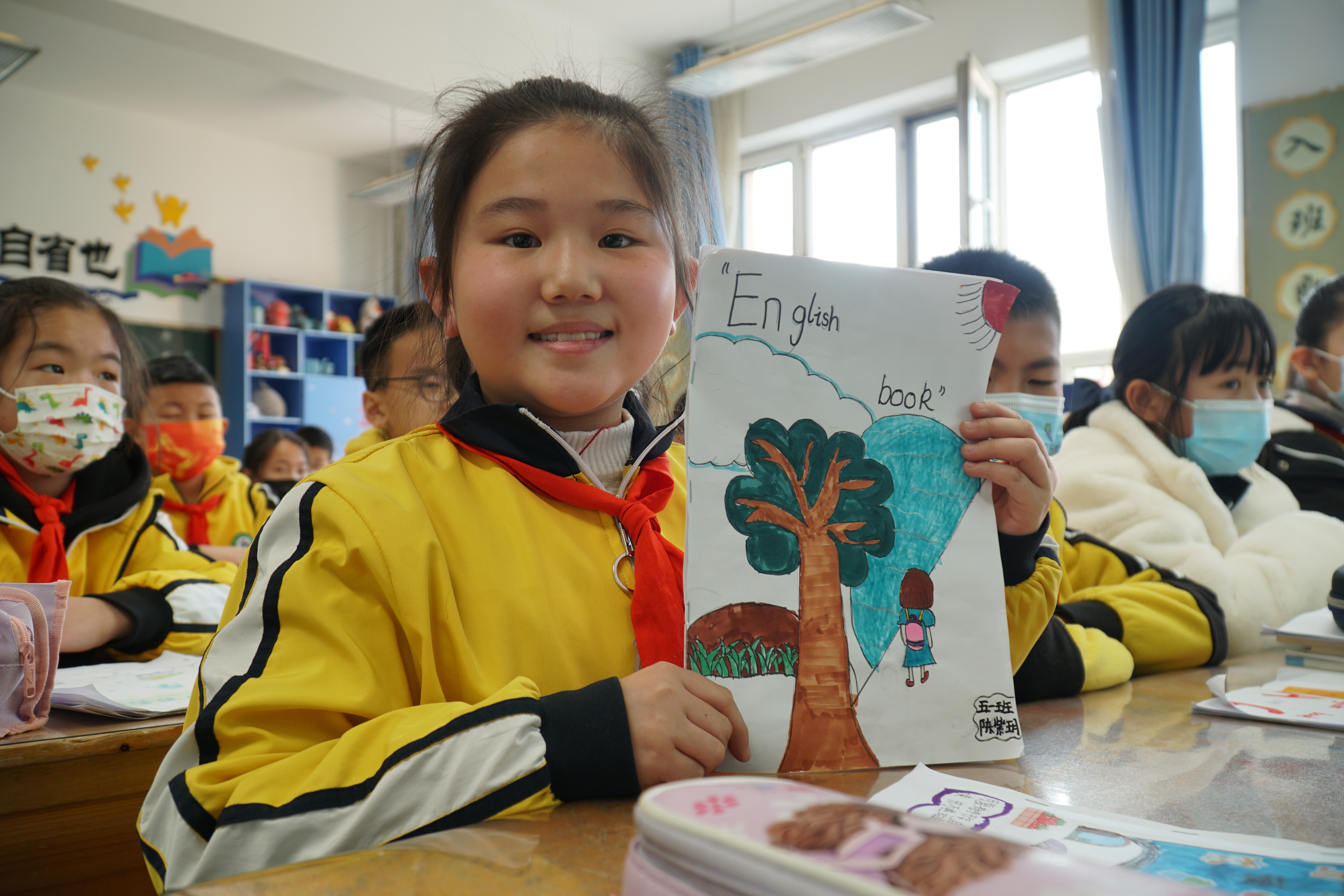 新华社照片,西宁,2022年3月1日 当开学遇到“双减” 会擦出怎样的火花?——青海西宁开学首日见闻 3月1日,在青海省西宁市城西区行知小学,五年级学生陈紫玥展示自己的寒假作业。 (配本社同题文字稿) 新华社记者 张子琪 摄