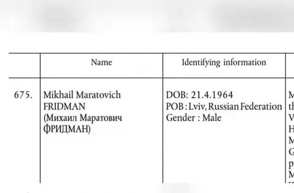 参考消息网3月1日报道 据俄新社报道,欧盟2月28日将多名俄罗斯企业家列入制裁名单,其中阿尔法集团总裁米哈伊尔·弗里德曼出生地为乌克兰利沃夫,但在制裁名单中的标注却是:米哈伊尔·弗里德曼,出生地利沃夫,俄罗斯联邦。(编译/魏良磊)