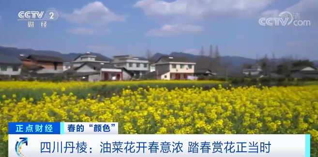 央视网消息:煦风暖阳,春意盎然。在四川眉山市丹棱县金峡村,金灿灿的油菜花点缀着大地,成为一道靓丽的风景,吸引了不少游客前来打卡拍照。