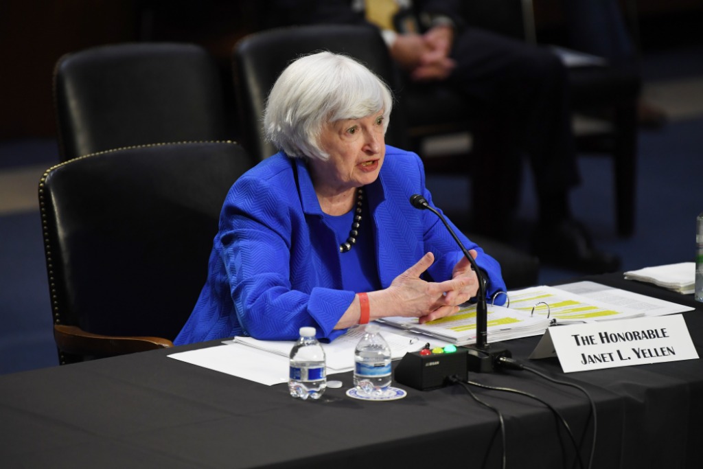 2021年9月28日,美国财政部长耶伦在华盛顿出席国会参议院银行、住房和城市事务委员会听证会。(新华社发,Pool图片/马特·麦克莱恩摄)