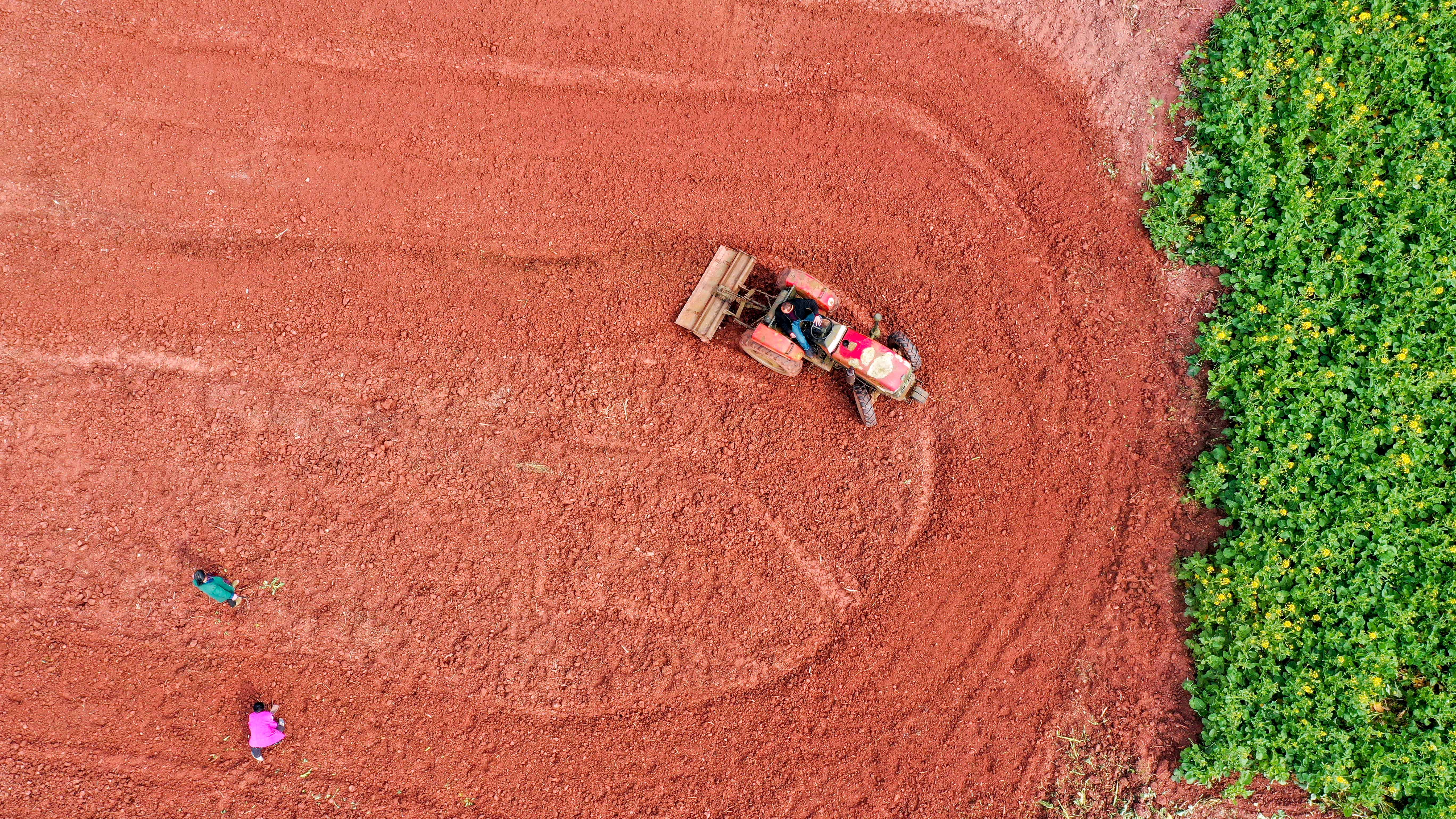 2022年2月25日,村民在四川省遂宁市安居区石洞镇双祠堂村劳作,为种植大豆做准备(无人机照片)。新华社发(刘昌松 摄)