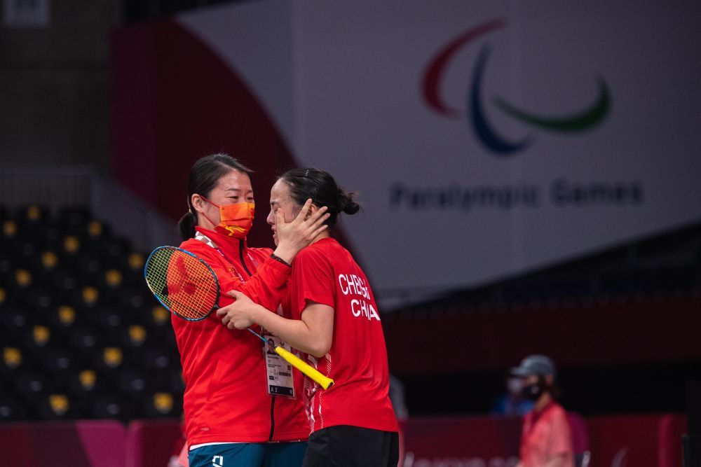 ⬆️2021年9月5日,在东京残奥会羽毛球女子单打SL4级决赛中后,中国选手程和芳(右)与教练张先明庆祝夺冠。新华社记者 张金加 摄