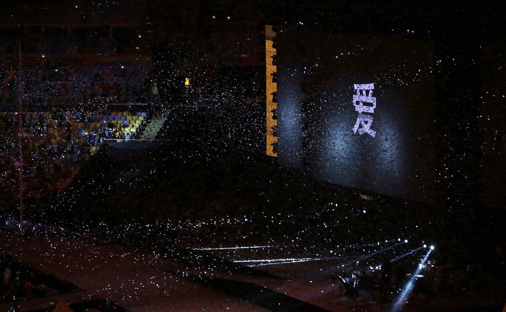 ⬆️2016年9月18日,在巴西里约热内卢举行的第十五届夏季残疾人奥林匹克运动会闭幕式上,大屏幕打出“爱”字。新华社记者李明摄