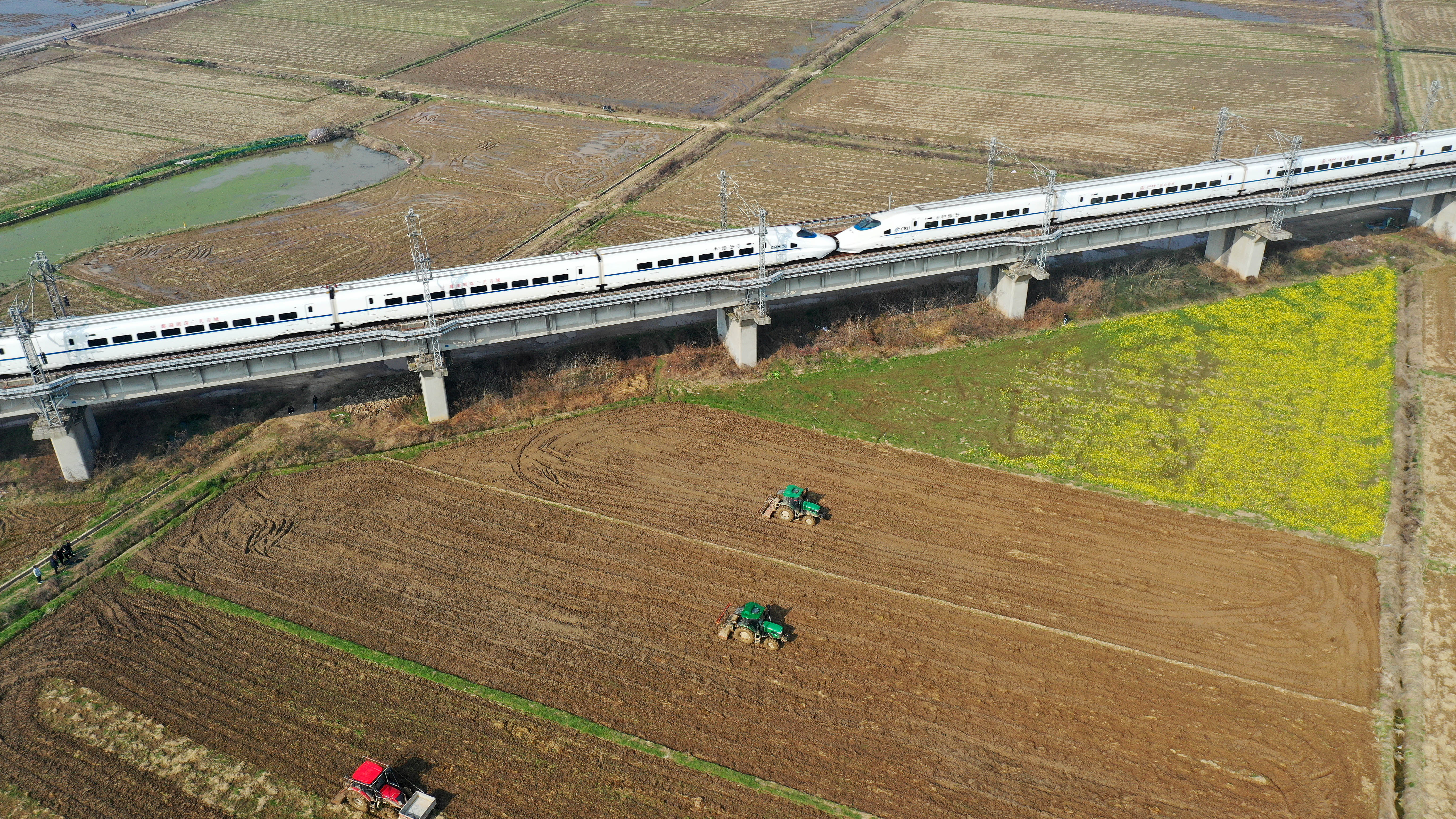 新华社照片,南昌,2022年3月2日 春暖大地农事忙 3月2日,在江西省南昌县冈上镇,农户在翻整田地备春耕(无人机照片)。 天气转暖,各地农民抢抓农时开展春耕生产,田间地头一派农忙景象。 新华社记者 彭昭之 摄