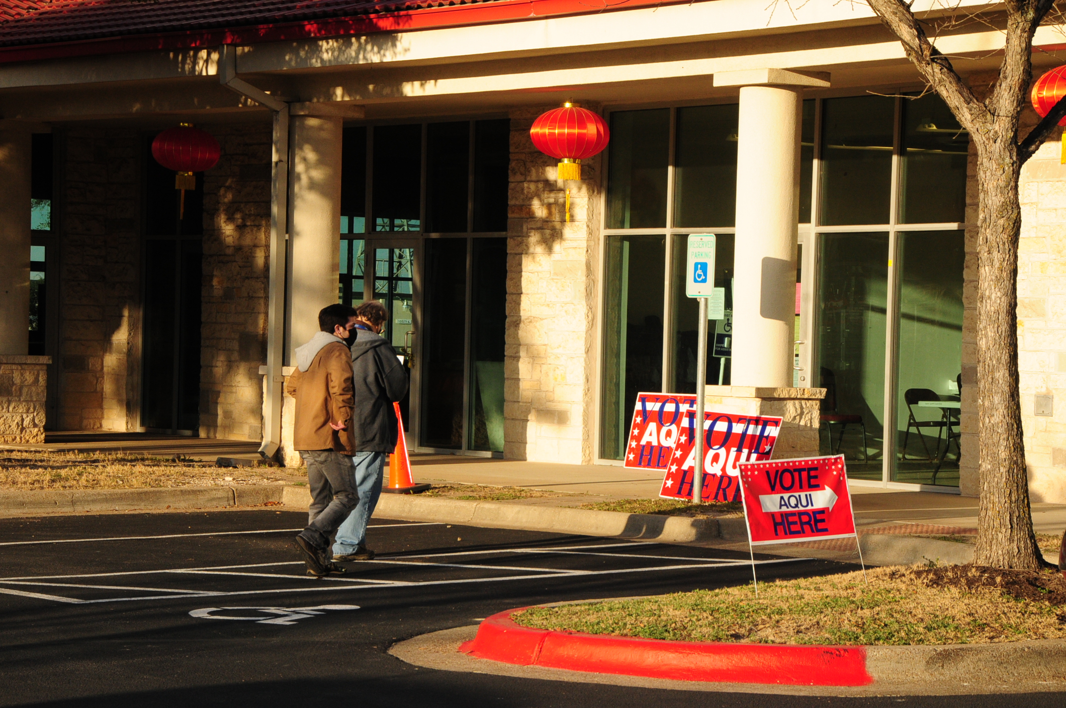 新华社照片,休斯敦(美国),2022年3月2日 (国际)(2)得州举行美国2022年中期选举预选 3月1日,两名男子前往美国得克萨斯州奥斯汀的一处投票站。 美国2022年中期选举3月1日以人口和面积第二大州得克萨斯州的预选拉开帷幕。 新华社发(李波摄)