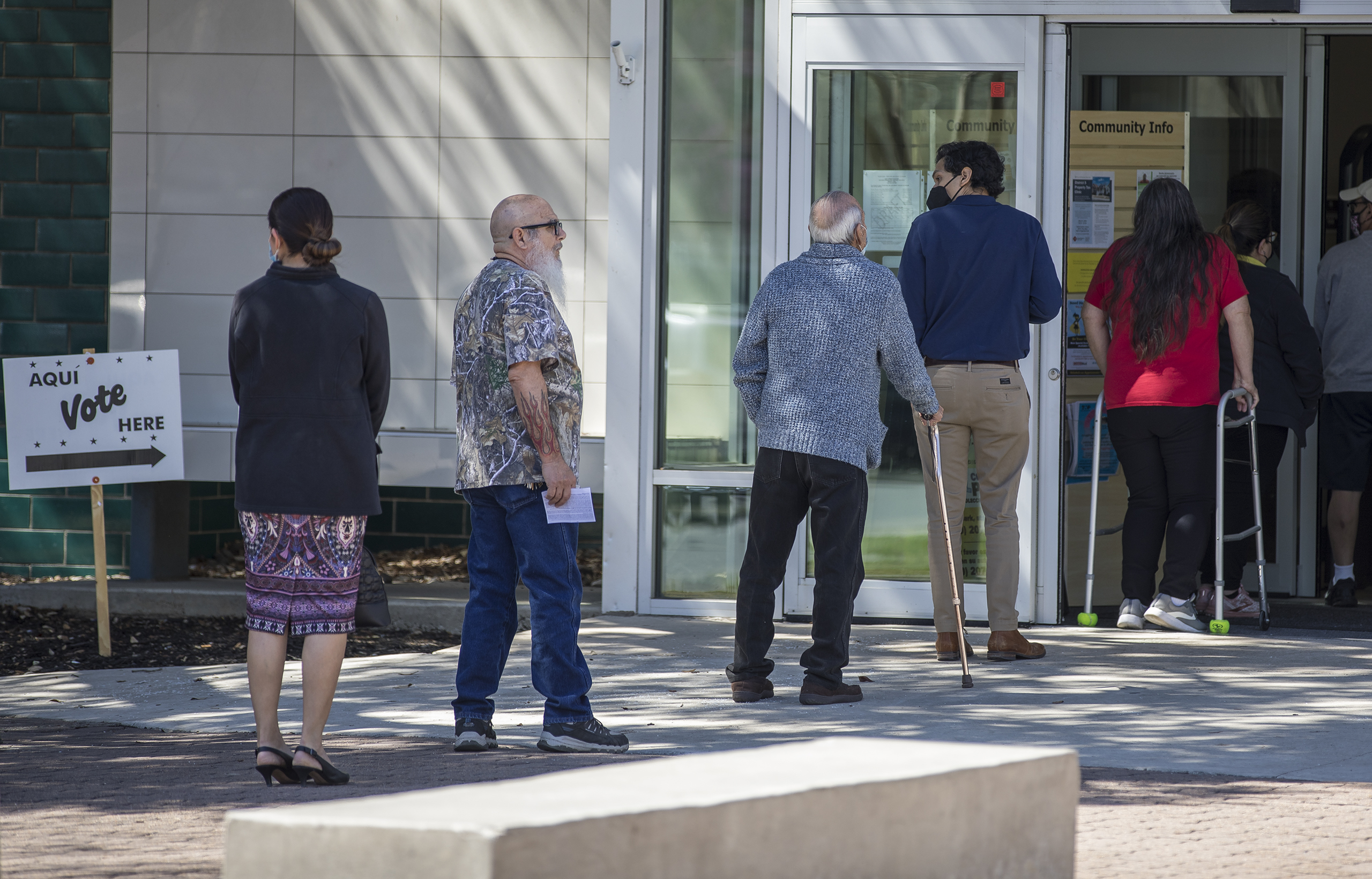 新华社照片,休斯敦(美国),2022年3月2日 (国际)(3)得州举行美国2022年中期选举预选 3月1日,人们在美国得克萨斯州圣安东尼奥的一处投票站排队。 美国2022年中期选举3月1日以人口和面积第二大州得克萨斯州的预选拉开帷幕。 新华社发(尼克·瓦格纳摄)