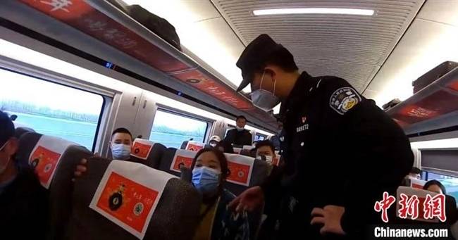 乘警耐心劝导霸座女子 上海铁路公安处供图