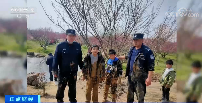 2月27日上午,湖北省黄梅县两小男孩在景区游玩时不慎陷入淤泥潭,救援民警赶到现场后,立即对被困小孩展开了救援。