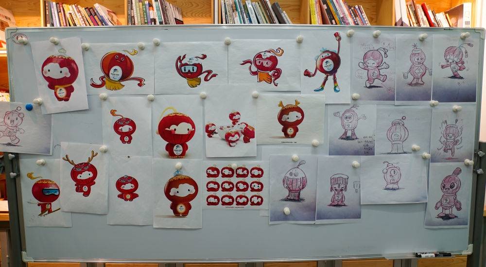 设计室内的“雪容融”草稿图。新华社记者 王帆 摄