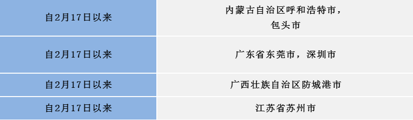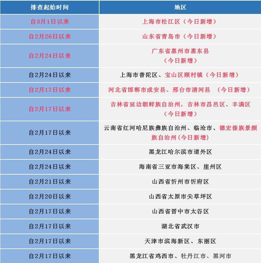 如果您近期有以下地区的旅居史,请第一时间向村(社区)、单位或入住酒店报备,配合做好各项疫情防控工作。