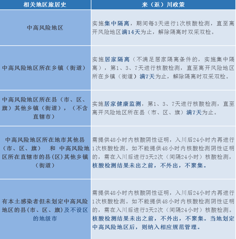 来(返)川人员要主动参与疫情防控工作,积极履行防控义务,做好个人防护,配合落实疫情防控措施。