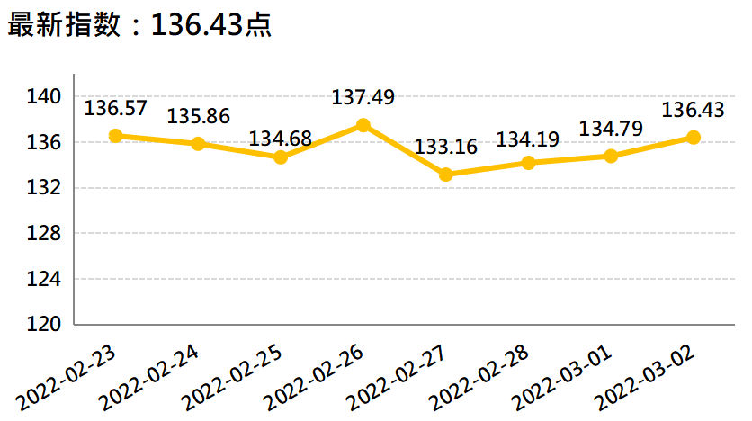 数据显示,截至3月2日,国内香蕉产地价格指数报99.75点,较上一发布日(2月23日,下同)91.34点上涨9.20%;香蕉销地批发价格指数报136.43点,较上一发布日136.57点下跌0.10%;进口蕉价格指数报1057.72点,较上一发布日1088.88点下跌2.86%;皇帝蕉产地价格指数报1364.24点,较上一发布日823.36点上涨65.69%。