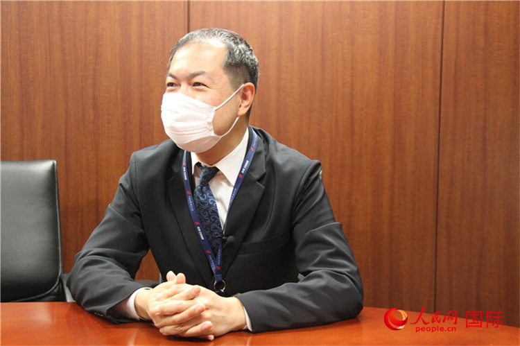2月21日,国航东京营业部成田航站旅客系长高桥靖弘接受人民网采访。李沐航摄