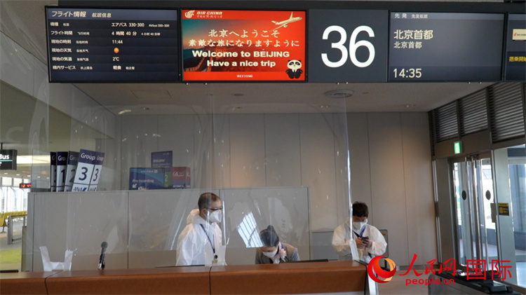 2月21日,登机口信息指示屏上打出由国航日本地区总部工作人员精心设计制作的标语“北京欢迎您,祝您旅程愉快”。青城摄
