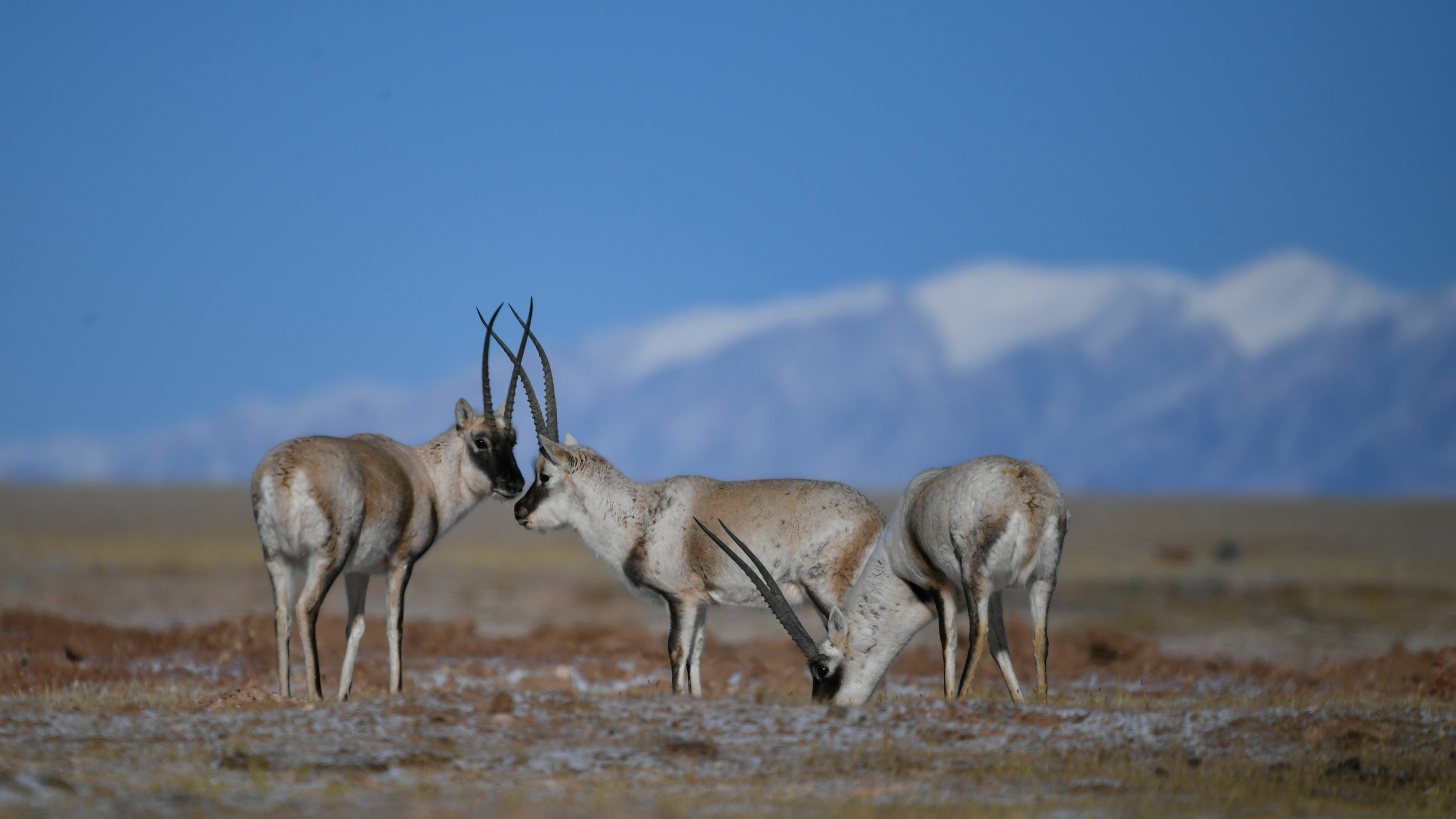 新华社照片,西宁,2022年3月3日 在“中华水塔”诗意栖居 2022年1月20日在可可西里拍摄的藏羚羊。 青海是黄河、长江、澜沧江的发源地,有着“中华水塔”美誉。这里山川壮美、群山横亘,众多内陆湖泊星罗棋布,河流纵横交错,成为野生动物的理想家园。 目前,青海分布有脊椎动物605种,其中中国特有种117种,青藏高原特有种120余种,国家一级重点保护野生动物37种。 新华社发 (潘彬彬摄)