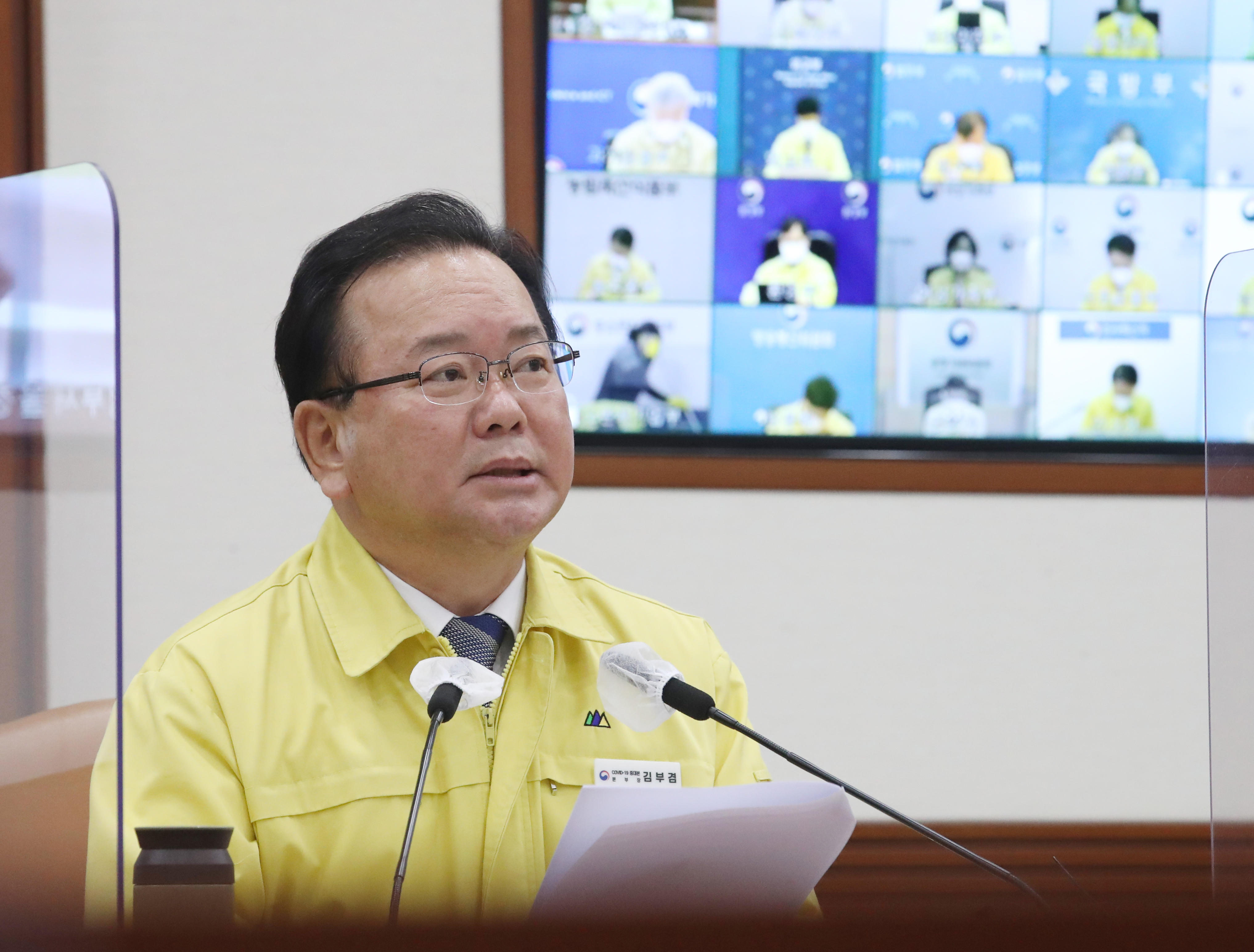 新华社照片,首尔,2022年3月3日 (国际疫情)(2)韩国国务总理金富谦新冠检测呈阳性 3月2日,在韩国首尔,国务总理金富谦在中央防疫对策本部应对新冠病毒会议上讲话。 据韩国国务总理秘书室3日消息,国务总理金富谦当天新冠病毒检测结果呈阳性。自当天起至9日,他将在总理公馆接受居家治疗。 新华社/纽西斯通讯社