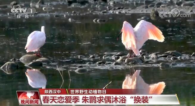 国家一级保护鸟类朱鹮也到了恋爱季,在陕西汉中盆地的朱鹮国家级自然保护区,2岁以上的朱鹮成鸟已经面颊朱红,步入成年。不同种群的朱鹮相约汉江湿地,打湿羽毛,把耳后和脖颈分泌出的黑色素涂抹到身上,让洁白的羽毛变成灰色,这层低调的灰色不仅是为未来的野外孵化“变装”,也是朱鹮求偶、释放爱意的信号。