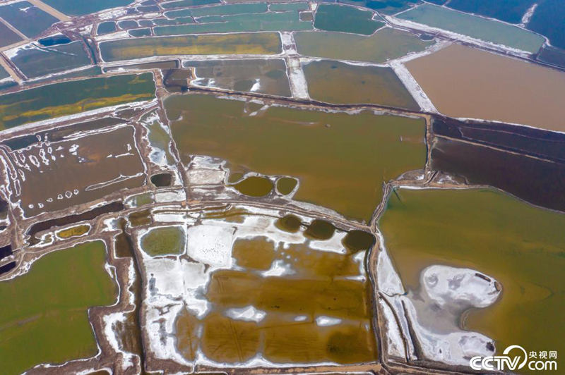 随着气温回升,山西省运城市盐湖湿地呈现色彩斑斓的美丽景观,空中俯瞰,犹如披上彩装,美不胜收。