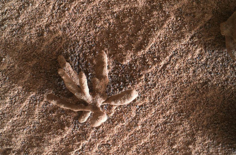 美国国家航空航天局图像显示,“好奇号”在火星发现奇特岩石,外观酷似花朵。团队确认这个物体是一个矿物形成物,具有由水析出的矿物形成的精致结构。