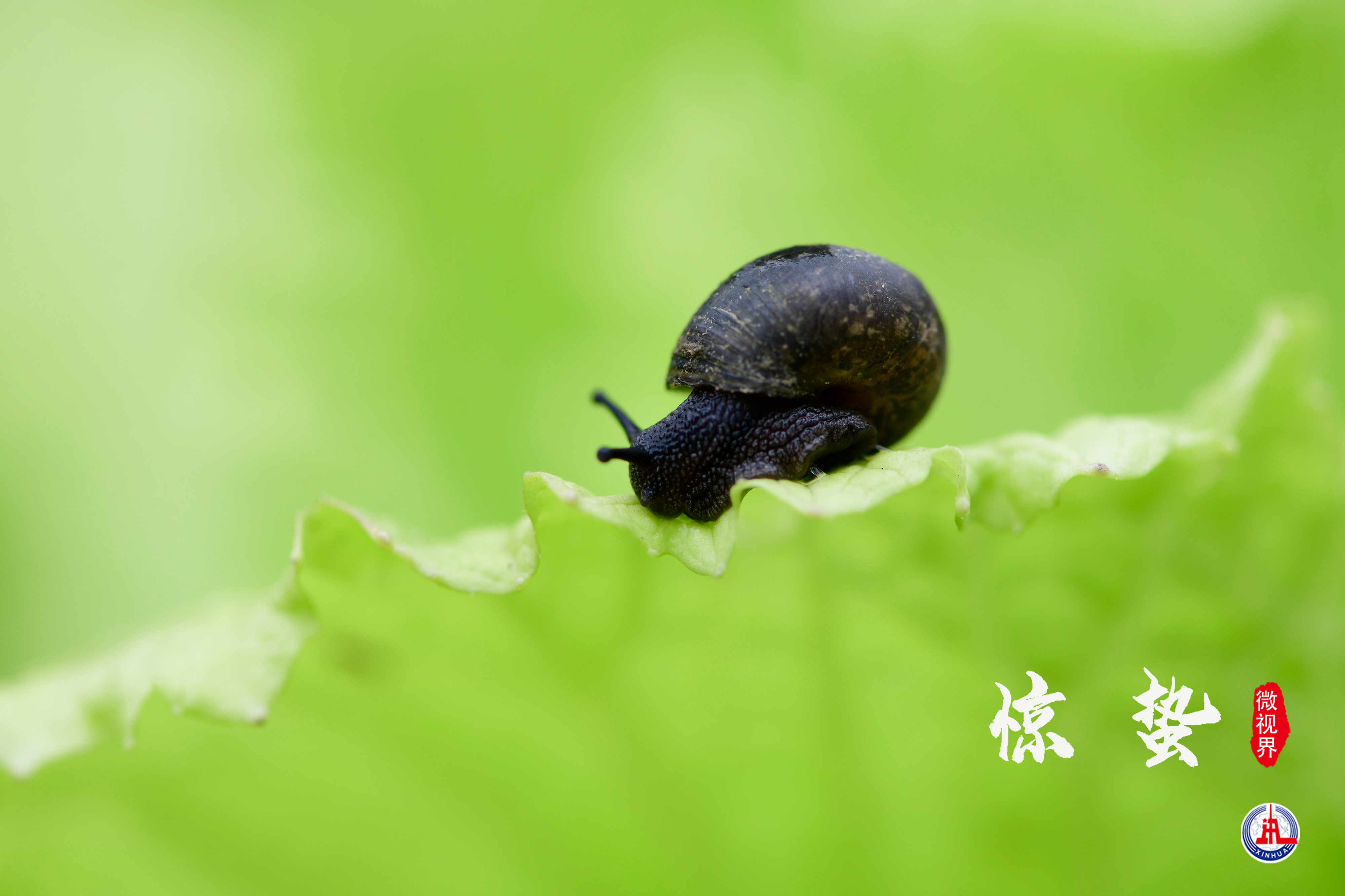 新华社照片,北京,2022年3月4日 微视界——惊蛰 2月27日,在贵州省遵义市余庆县白泥镇满溪村,一只蜗牛在爬行。 3月5日是惊蛰。天气回暖,春气萌动,万物生长,大地生机勃勃。 新华社发(穆明飞 摄) 新华社 樊雨晴 制图
