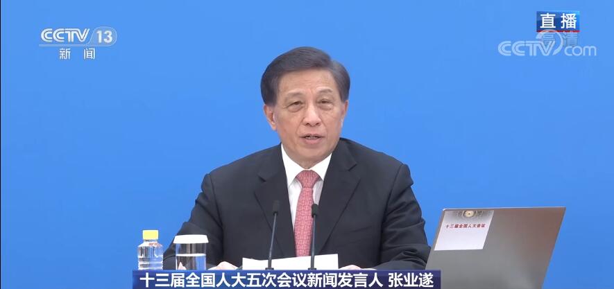 央视网消息:3月4日,十三届全国人大五次会议新闻发布会在北京人民大会堂新闻发布厅举行,由大会发言人张业遂就大会议程和人大工作相关问题回答中外记者提问。