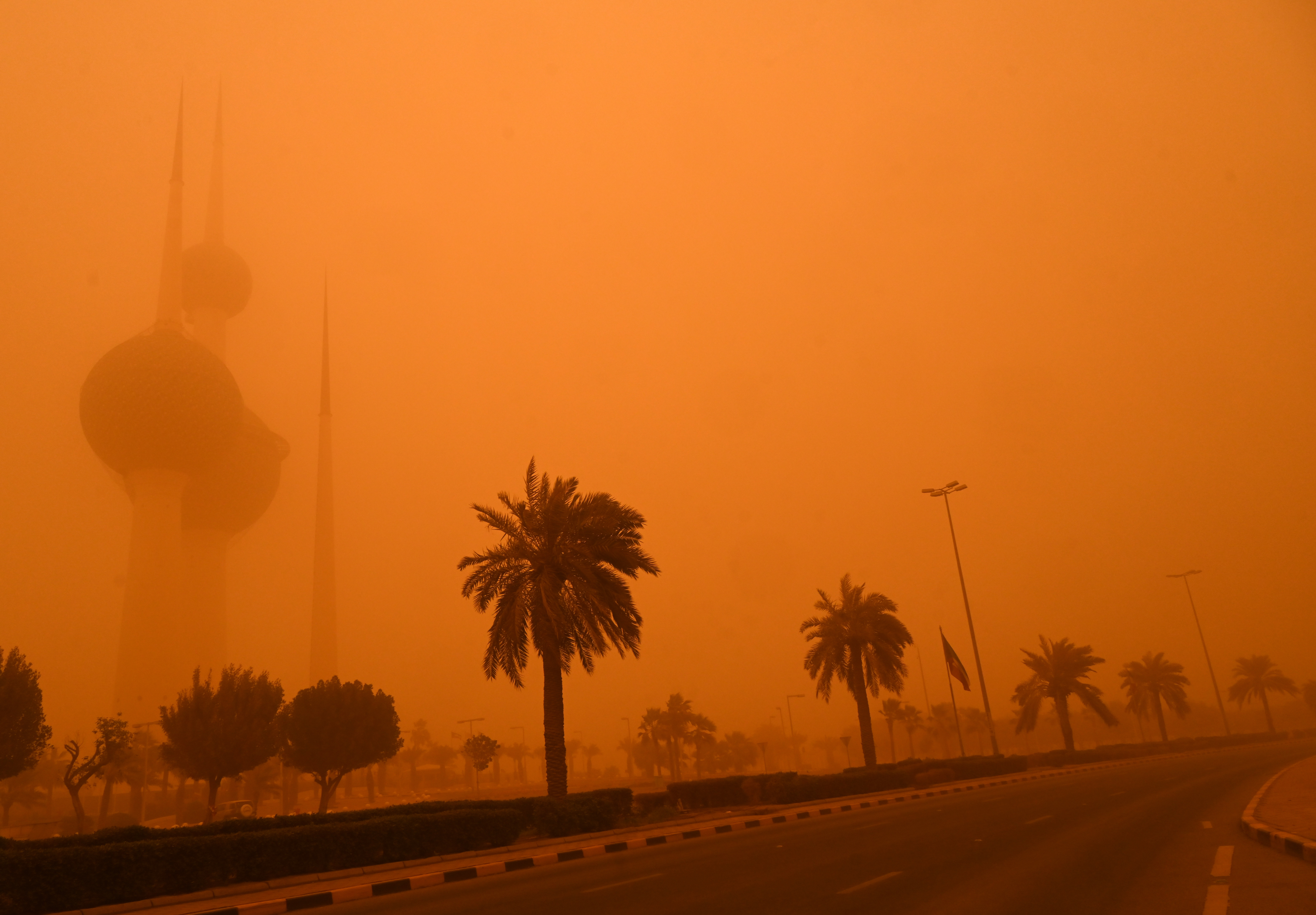 新华社照片,科威特城,2022年3月4日 (国际)(2)科威特遭遇强沙尘暴 3月4日,在科威特首都科威特城,建筑物笼罩在沙尘中。 当天,科威特遭遇强沙尘暴。 新华社发(阿萨德摄)