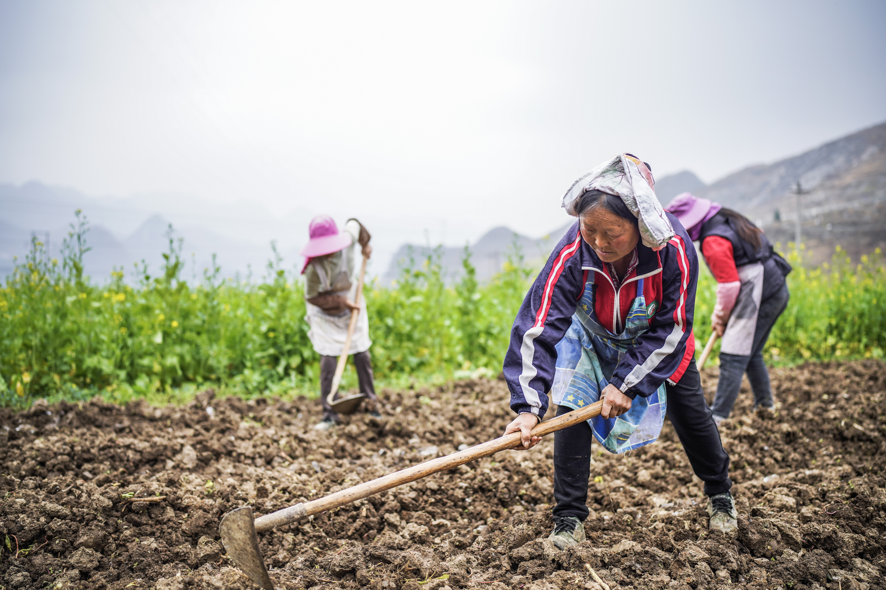 新华社照片,六枝(贵州),2022年3月4日 惊蛰将至农事忙 3月4日,六枝特区郎岱镇坝子村农户在田地里劳作。 惊蛰节气将至,贵州省六盘水市六枝特区农户抢抓农时,开展春播耕地、土地管护、田地施肥等农事活动,田间地头一派繁忙。 新华社记者 陶亮 摄