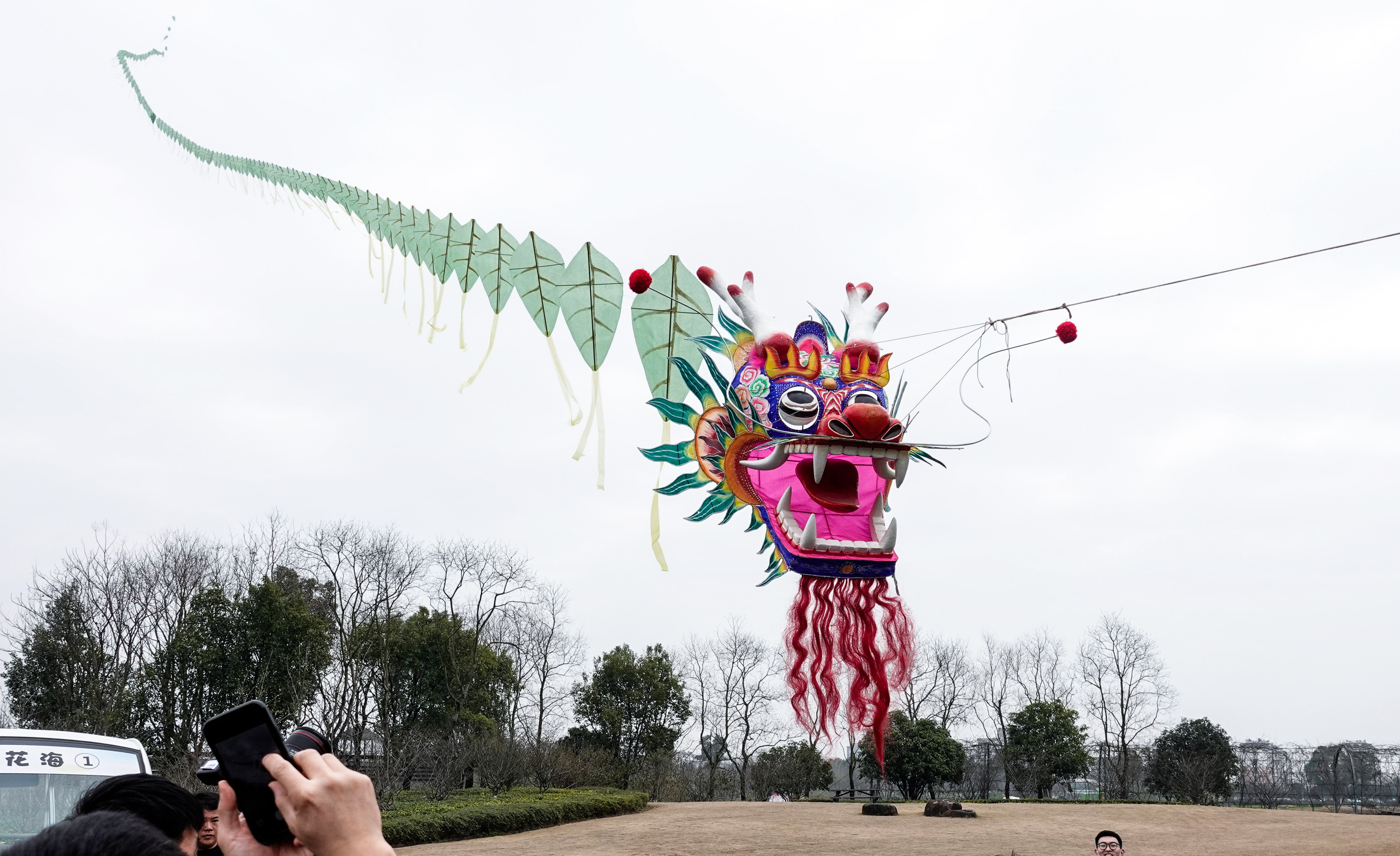 新华社照片,杭州,2022年3月4日 巨型“茶龙”风筝扮靓春日 3月4日,工作人员在径山镇径山花海景区放飞150多米长的巨型“茶龙”风筝。 当日,浙江省杭州市余杭区径山镇举办了“二月二”宋韵风筝节暨“茶龙”风筝放飞活动。“茶龙”风筝的龙身由156片茶叶形状的小风筝组成,寓意径山镇特色茶产业蒸蒸日上,这既是对杭州传统宋韵文化的继承和发展,也是希望用放飞“茶龙”风筝的形式,祈愿新年风调雨顺。活动现场还有各种风筝放飞表演,风筝制作精美、形象生动有趣、放飞在天空中活灵活现,为春日增添一道靓丽的风景线。 风筝在杭州俗称“鸢儿”,杭州民间的风筝制作工艺发达,自古以来放风筝就是非常受欢迎的传统游戏项目。 新华社记者 徐昱 摄