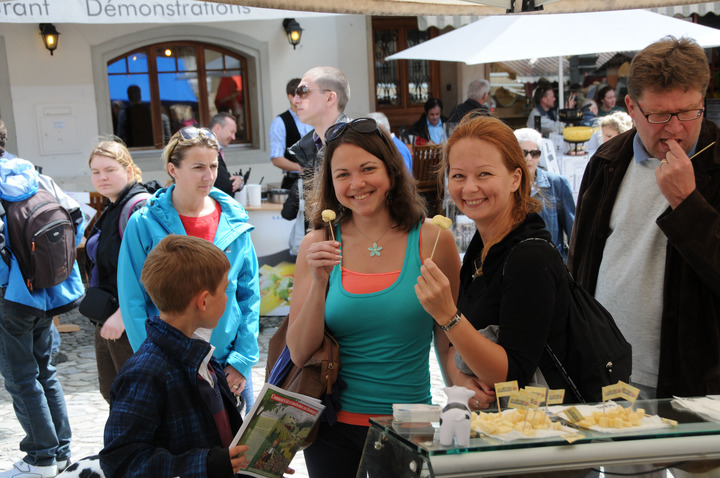 图为2012年5月6日游客在瑞士格吕耶尔品尝格吕耶尔奶酪。新华社记者杨京德摄