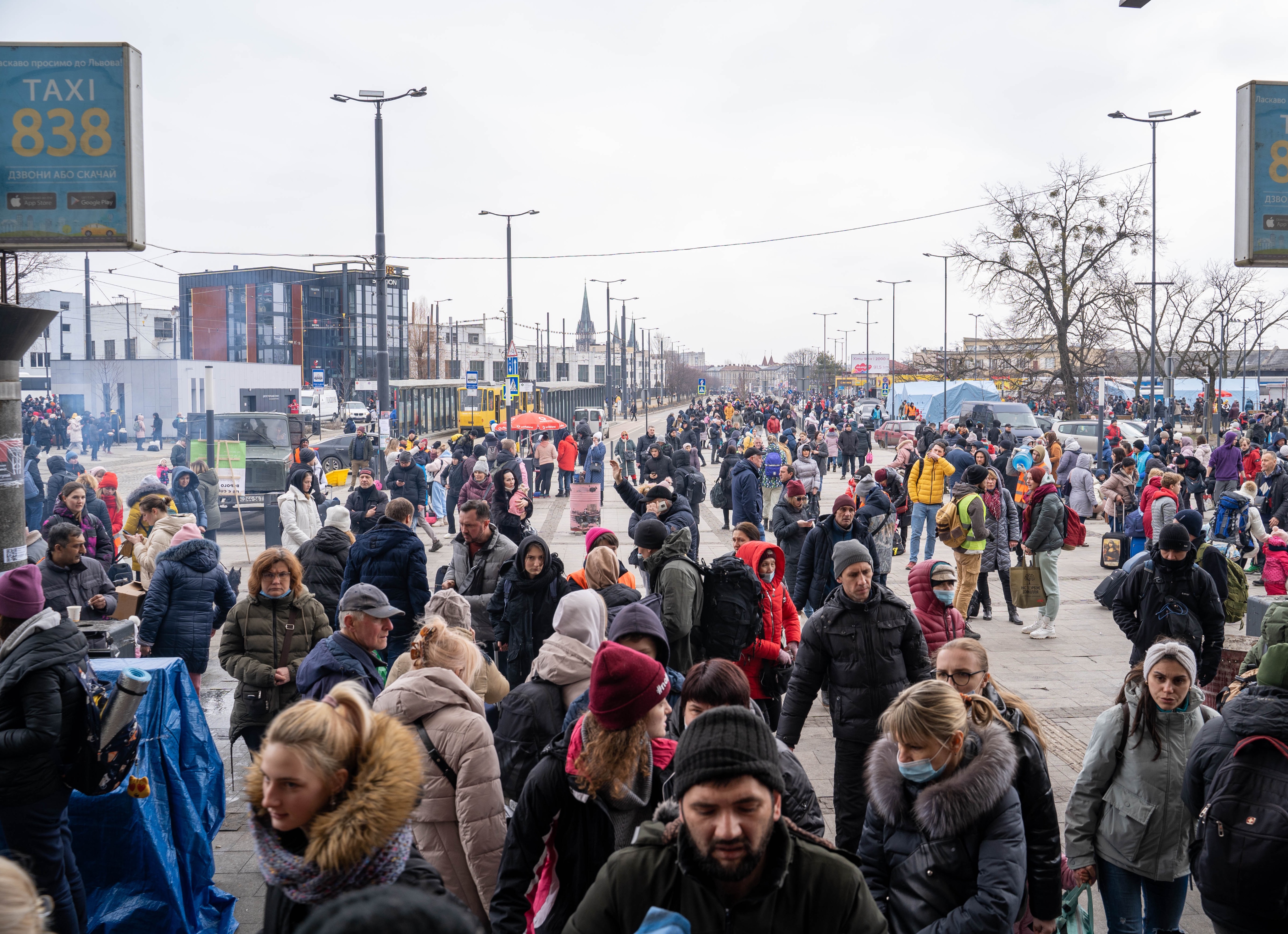 这是3月3日在乌克兰利沃夫火车站拍摄的站前广场。新华社记者任珂摄