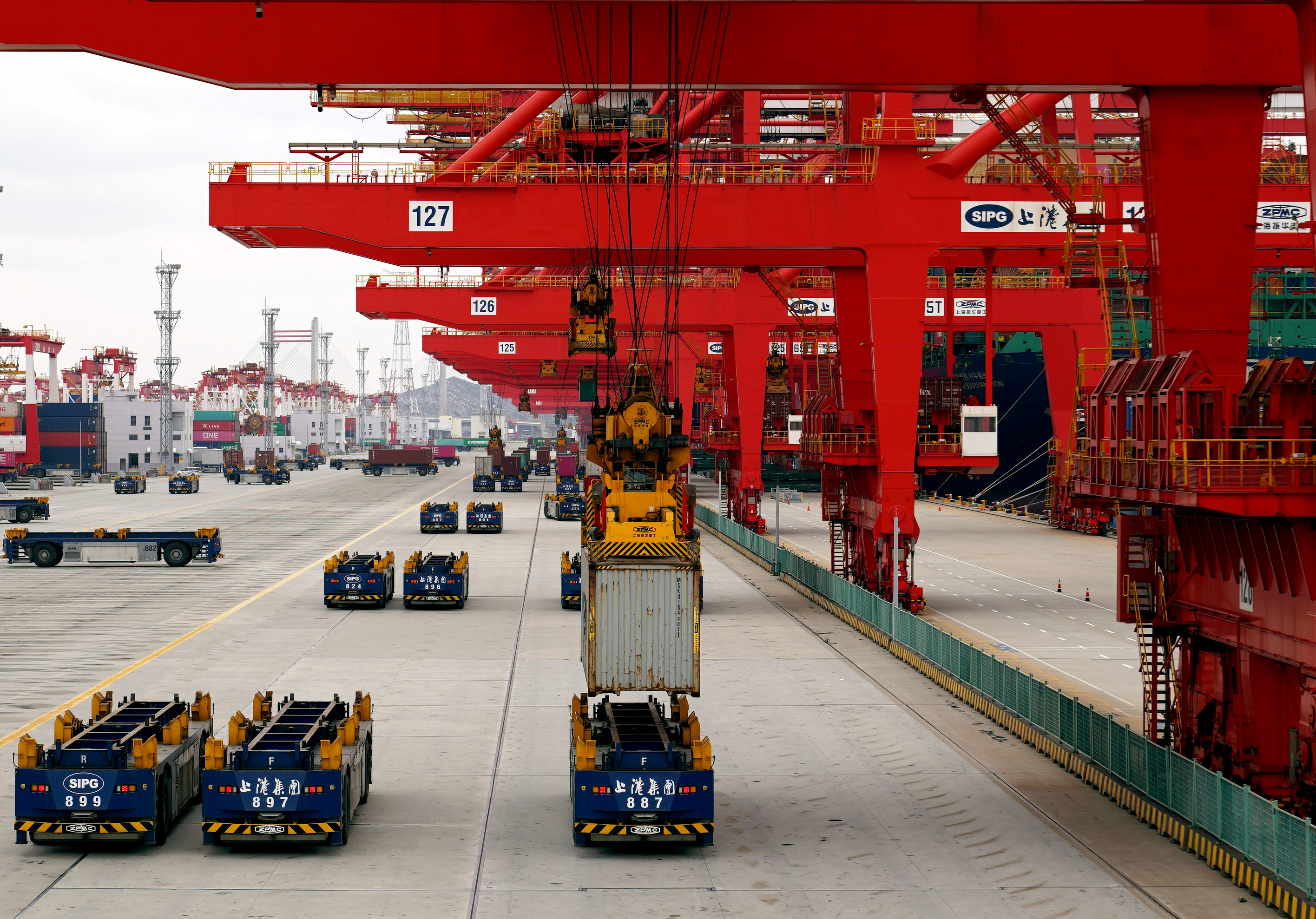 新华社照片,上海,2022年3月4日 上海:向海而兴打造国际航运中心“升级版” 2月17日拍摄的上海洋山港四期自动化码头。 (配本社同题文字稿) 新华社记者 杨有宗 摄