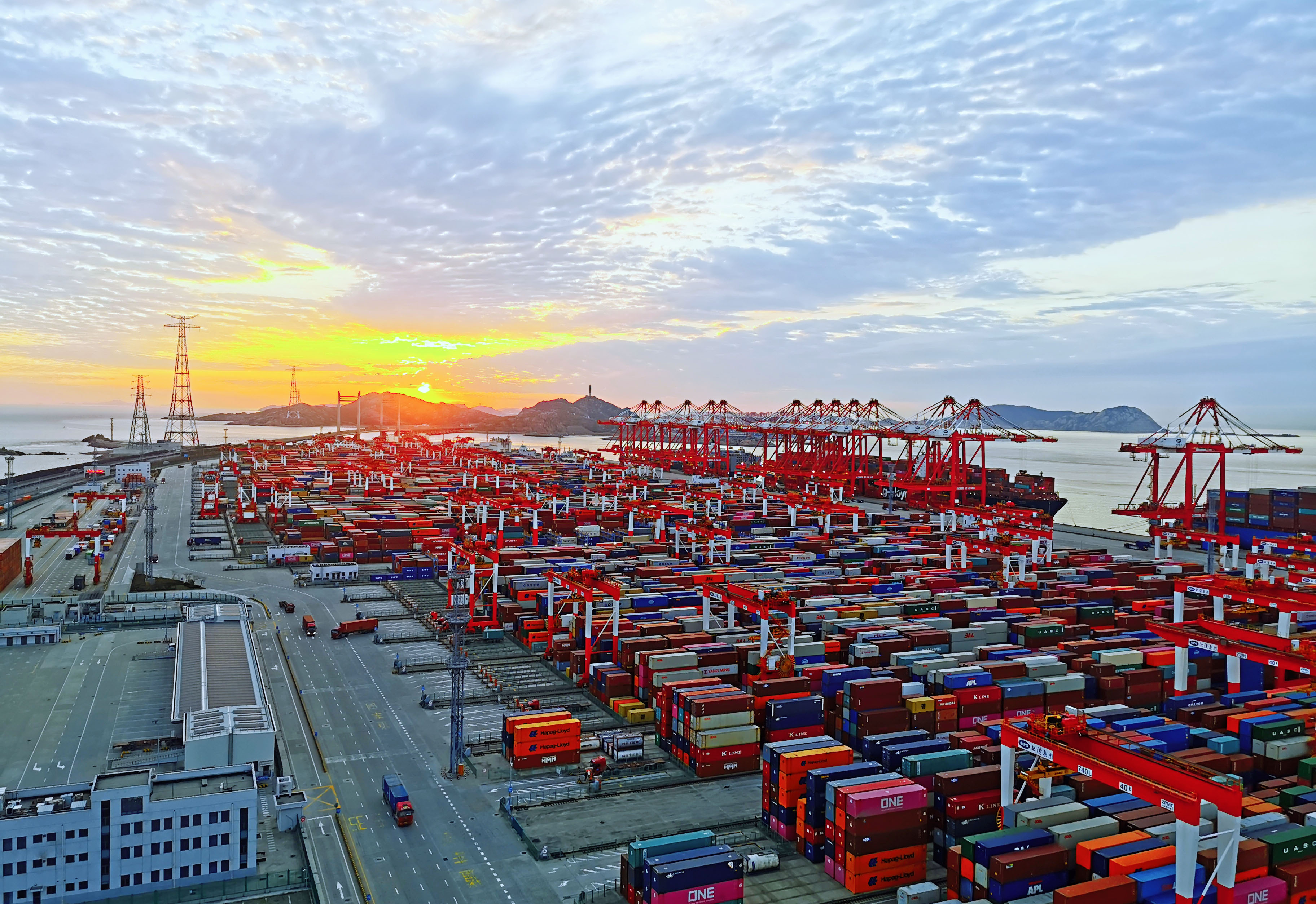 新华社照片,上海,2022年3月4日 上海:向海而兴打造国际航运中心“升级版” 这是1月1日拍摄的洋山港的新年日出。 (配本社同题文字稿) 新华社发