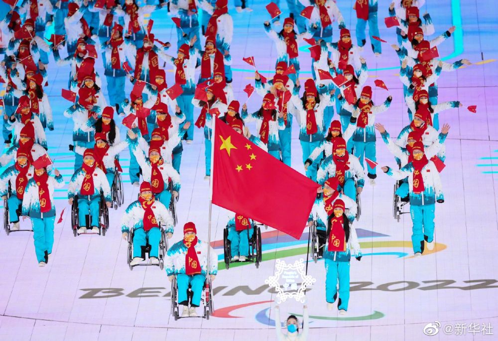 【中国冬残奥运动员入场有多豪迈】4日晚北京冬残奥会开幕式上,当东道主中国队入场时,现场响起中国人民耳熟能详的《歌唱祖国》。(摄影:兰红光、才扬、李尕)
