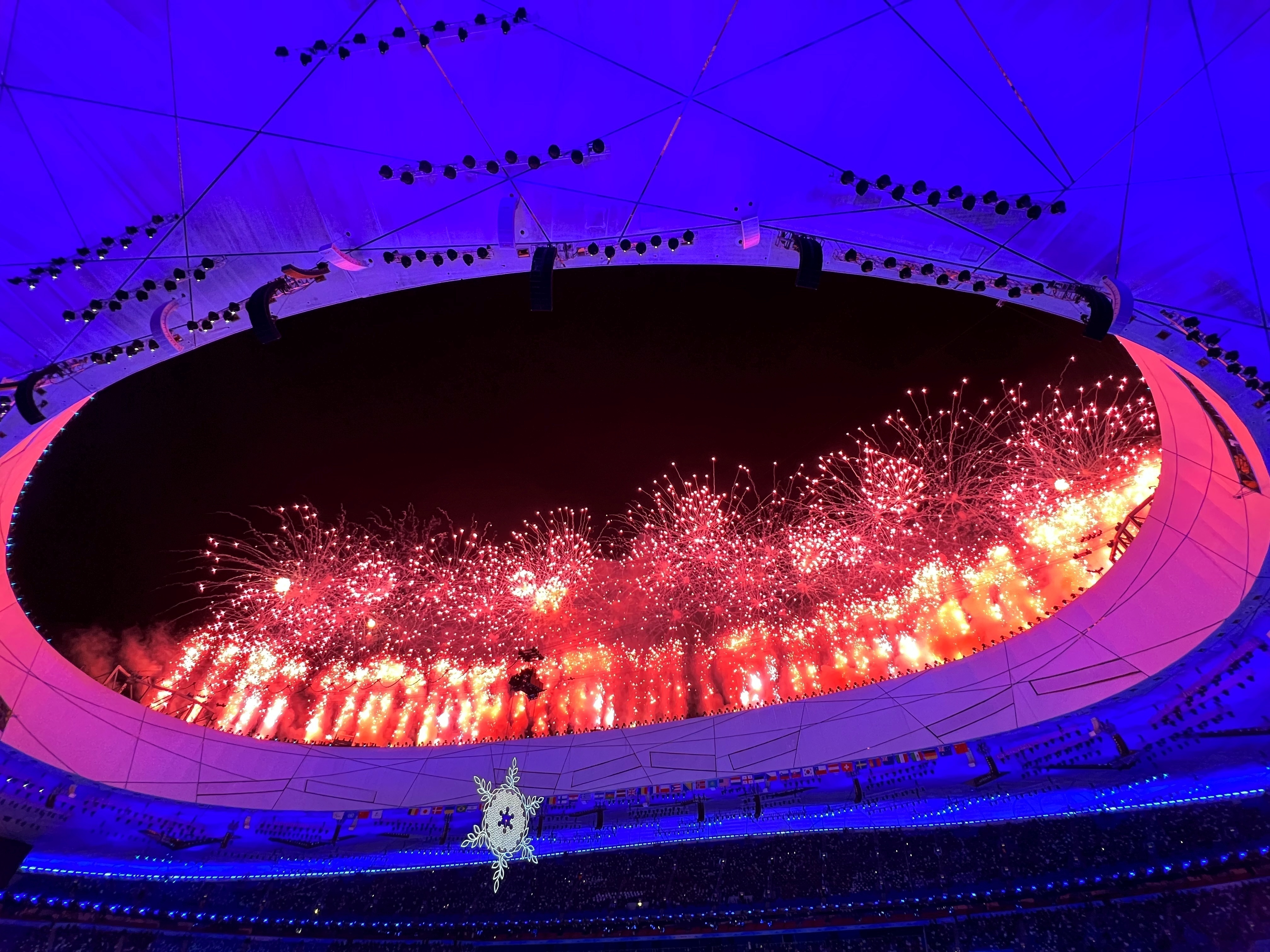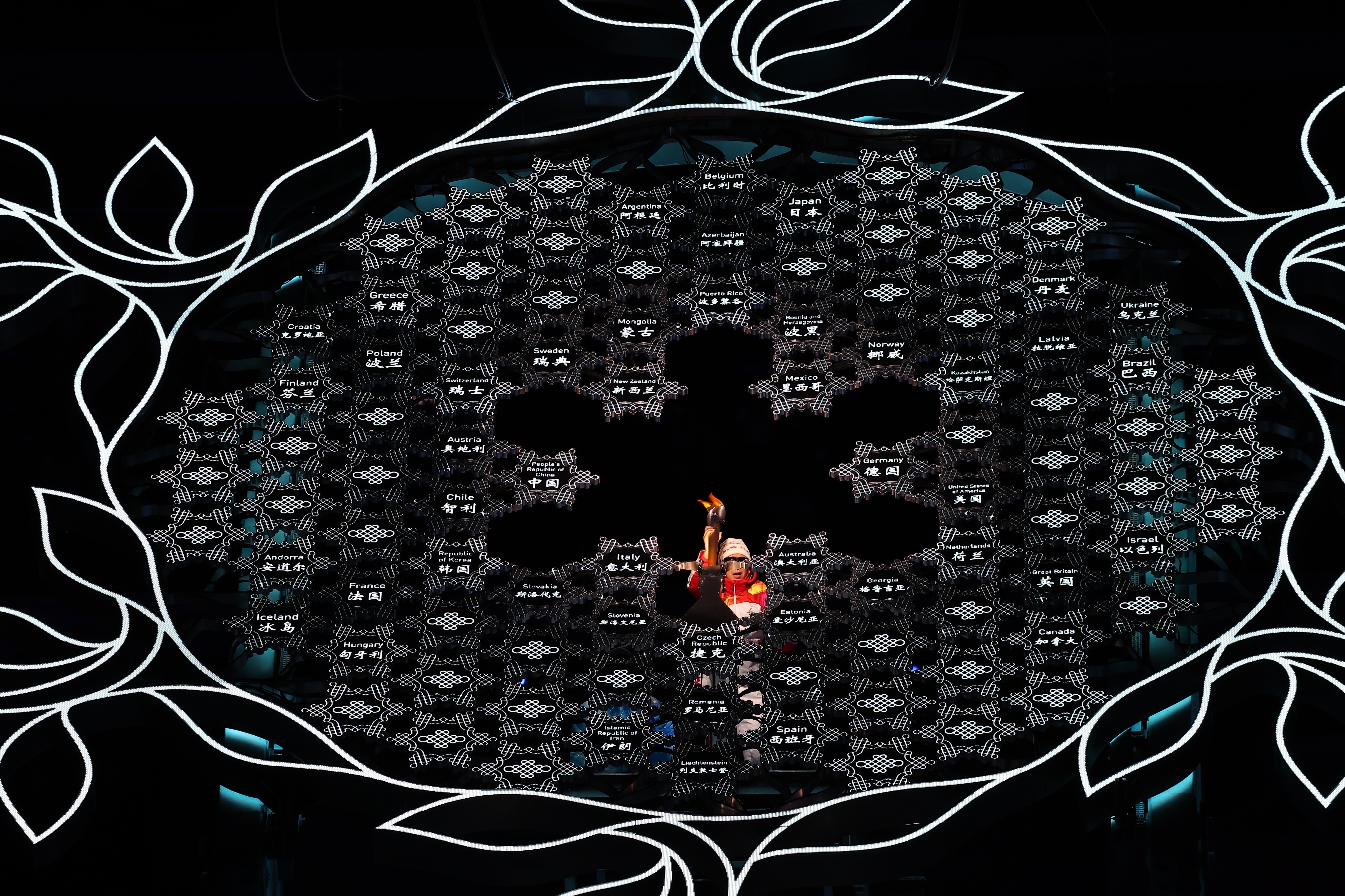 点火是开幕式最重要的环节之一。我们采用了北京冬奥会的点火装置——雪花火炬,依然采用“微火”的形式。这是总导演张艺谋的整体设想,我们贯穿始终。但是这次,我们选择了盲人运动员李端来点火,创意非常大胆。