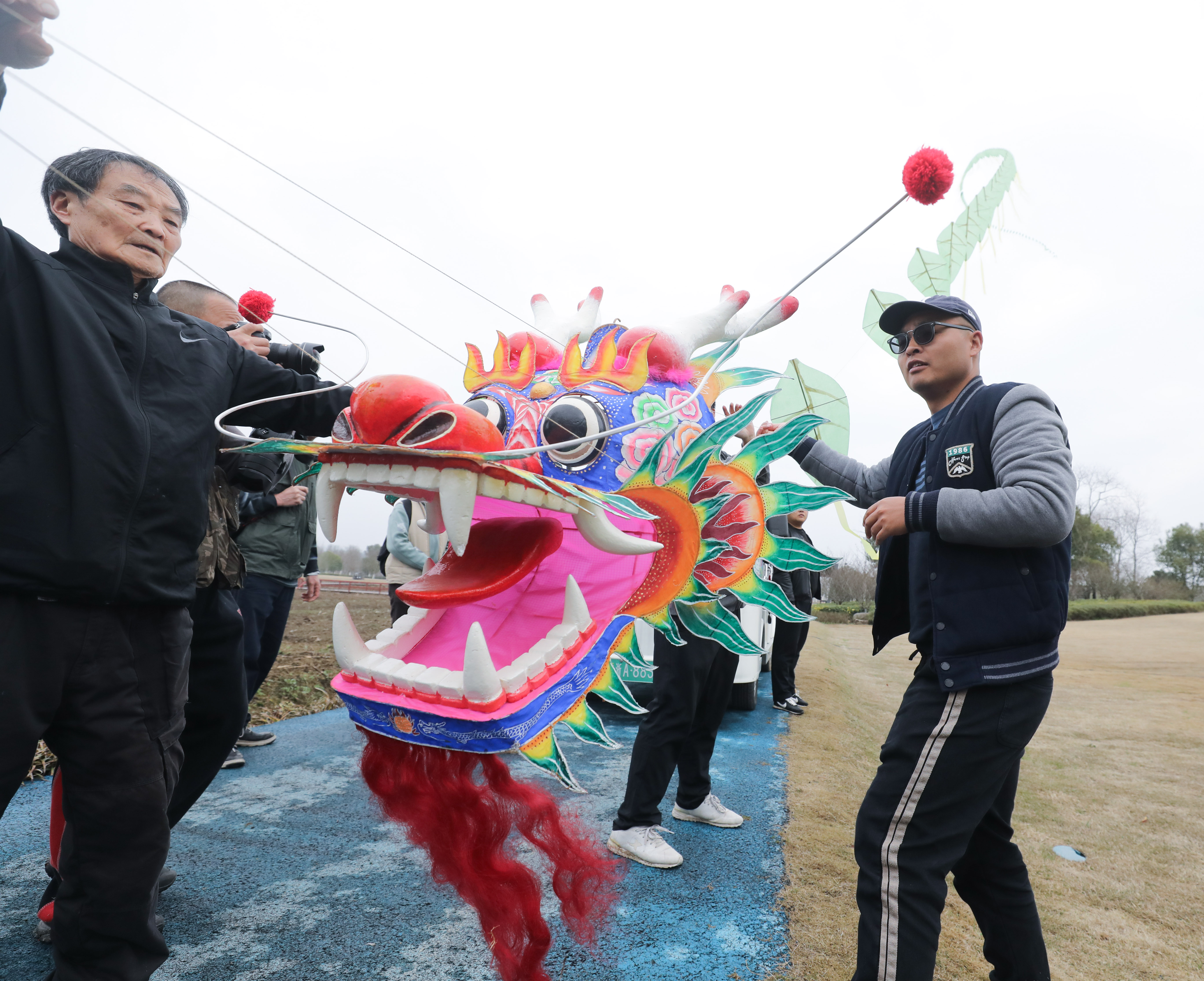 新华社照片,杭州,2022年3月4日 巨型“茶龙”风筝扮靓春日 3月4日,工作人员在径山镇径山花海景区准备放飞150多米长的巨型“茶龙”风筝。 当日,浙江省杭州市余杭区径山镇举办了“二月二”宋韵风筝节暨“茶龙”风筝放飞活动。“茶龙”风筝的龙身由156片茶叶形状的小风筝组成,寓意径山镇特色茶产业蒸蒸日上,这既是对杭州传统宋韵文化的继承和发展,也是希望用放飞“茶龙”风筝的形式,祈愿新年风调雨顺。活动现场还有各种风筝放飞表演,风筝制作精美、形象生动有趣、放飞在天空中活灵活现,为春日增添一道靓丽的风景线。 风筝在杭州俗称“鸢儿”,杭州民间的风筝制作工艺发达,自古以来放风筝就是非常受欢迎的传统游戏项目。 新华社记者 徐昱 摄