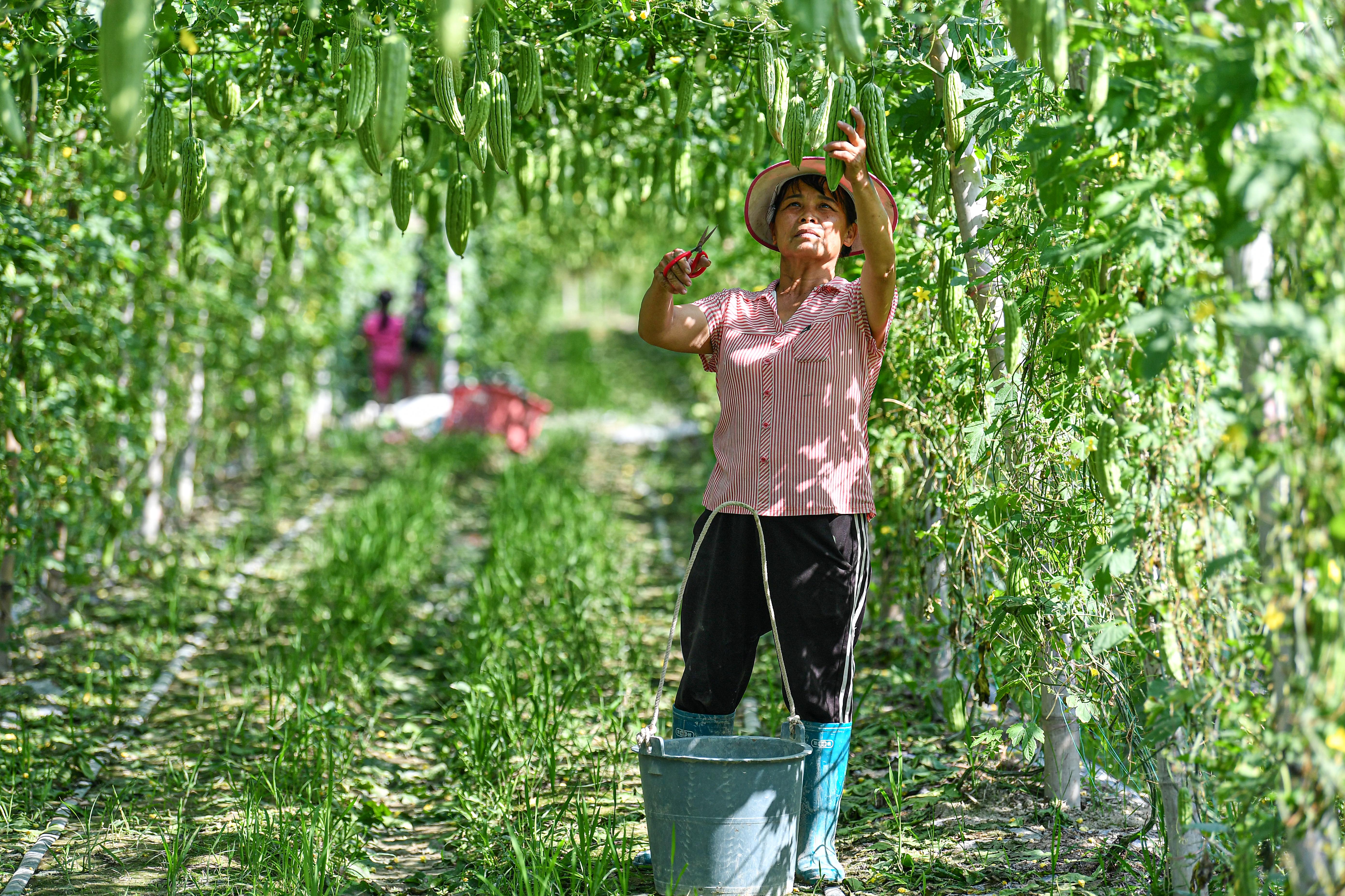 新华社照片,屯昌(海南),2022年3月5日 海南屯昌:枫木苦瓜采收忙 3月5日,村民在海南屯昌枫木镇采收枫木苦瓜。 近日,海南屯昌县迎来枫木苦瓜收获季,当地农民抓紧采收。枫木苦瓜是屯昌冬季瓜菜名片产品,当地通过大力发展苦瓜种植,助力乡村振兴。 新华社记者 蒲晓旭 摄