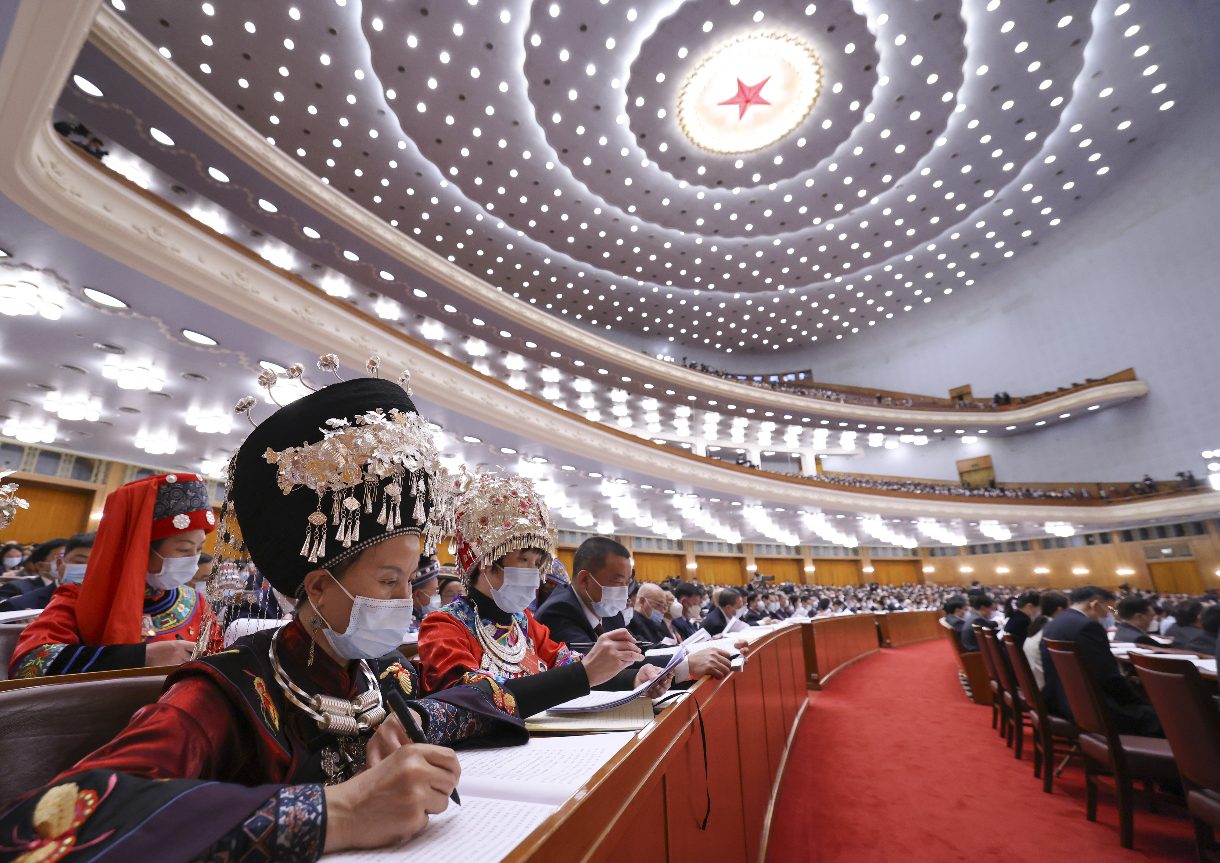 新华社照片,北京,2022年3月5日 十三届全国人大五次会议在京开幕 3月5日,第十三届全国人民代表大会第五次会议在北京人民大会堂开幕。 新华社记者 刘卫兵 摄