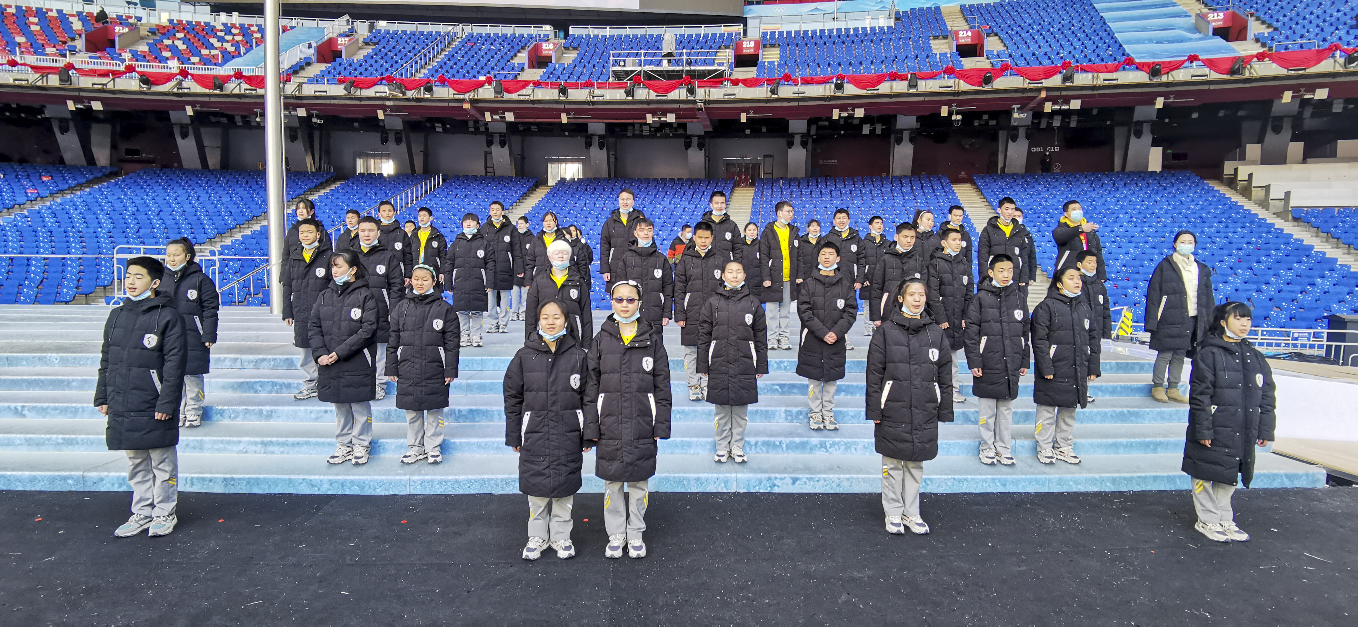 新华社照片,北京,2022年3月5日 (新华全媒+·北京冬残奥会)(10)这乐声,冲破黑暗直抵未来 3月4日晚,在北京国家体育场举行的北京2022年冬残奥会开幕式上,重庆市特殊教育中心扬帆管乐团奏响了国际残奥委会会歌——《未来赞美诗》。残奥会会旗冉冉升起,庄严磅礴的旋律回荡在体育场上空,向世界展示了中国残疾人昂扬奋进的精神风貌,传递着自强不息的中国力量。 这支管乐团里的视障学生,全部来自重庆市特殊教育中心。从去年11月接到演出任务到参加演出,一共是116天。扬帆管乐团从100余名团员中选拔出44名学生与3名老师参演。学生中年龄最大的22岁,最小的仅10岁。 扬帆管乐团成立于2011年,最初由34名老师、36名视障学生组成。历经10余年的发展,乐团现有学生70余人,已发展成为全球规模最大的盲人管乐团。 从1月中旬拿到乐谱到参加演出,一共只有49天时间。为视障学生读乐谱、录制有声乐谱的工作全部由本校老师承担。管乐团师生放弃了寒假休息,进行了高强度集训。师生同心,克服了时间短、任务重、难度大等困难,5天时间内完成了乐曲的首次排练。 2月8日赴北京集训以来,学生们在老师的陪护下,克服了天气寒冷、气候干燥的困难和饮食上的不习惯,始终以饱满的热情投入到训练之中。 台上一分钟,台下十年功。改编后的国际残奥委会会歌《未来赞美诗》标准演奏时长1分58秒。为了完美地展现这1分58秒,记谱、演奏、排练还只是完成了第一步。对于视障学生而言,最大的困难是站立、队列行走和持乐器姿势的训练、表情的管理。 还有就是要适应低温环境下的演奏。3月4日开幕式当天,鸟巢夜间温度大约只有1℃,孩子们要适应在寒冷的环境中长时间站立,为此管乐团每天在室外训练达半个小时,向中国人民解放军军乐团老师请教如何给乐器保温。 封闭的生活环境、艰苦的训练、高强度的联排,孩子们都一关一关地闯了过来。问他们苦不苦,累不累,他们都会回答:苦,累,但是值得!因为他们知道肩上担负着沉甸甸的责任,承载着满满的爱与期待。能够亲身参与到残奥盛会中,这份荣耀也值得每一个人全力以赴。 他们看不见世界,但他们的努力,世界看见了! 图为重庆市特殊教育中心扬帆管乐团参演团队在国家体育场“鸟巢”内彩排(2月24日摄)。 新华社发(甘洲摄)