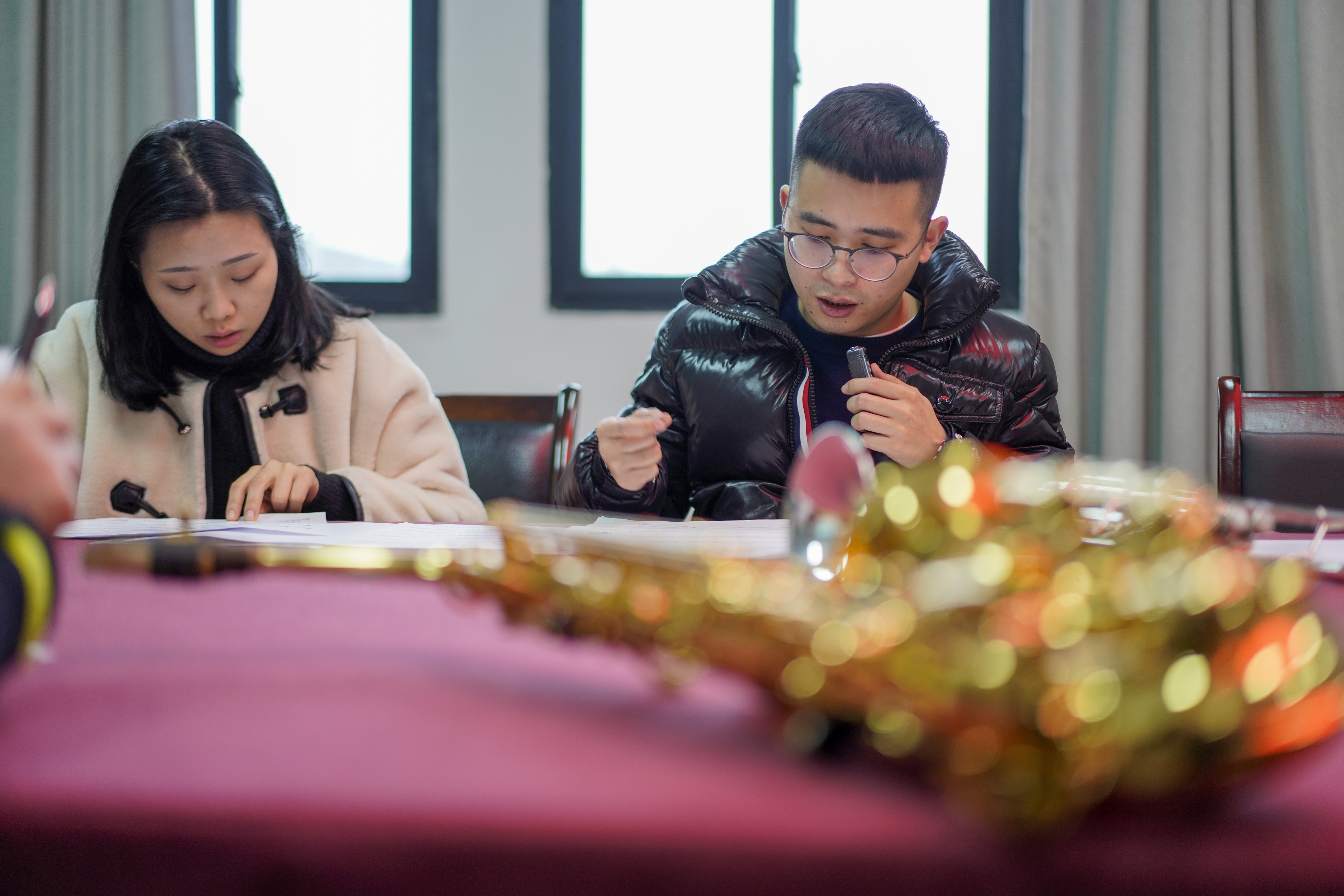 新华社照片,北京,2022年3月5日 (新华全媒+·北京冬残奥会)(7)这乐声,冲破黑暗直抵未来 3月4日晚,在北京国家体育场举行的北京2022年冬残奥会开幕式上,重庆市特殊教育中心扬帆管乐团奏响了国际残奥委会会歌——《未来赞美诗》。残奥会会旗冉冉升起,庄严磅礴的旋律回荡在体育场上空,向世界展示了中国残疾人昂扬奋进的精神风貌,传递着自强不息的中国力量。 这支管乐团里的视障学生,全部来自重庆市特殊教育中心。从去年11月接到演出任务到参加演出,一共是116天。扬帆管乐团从100余名团员中选拔出44名学生与3名老师参演。学生中年龄最大的22岁,最小的仅10岁。 扬帆管乐团成立于2011年,最初由34名老师、36名视障学生组成。历经10余年的发展,乐团现有学生70余人,已发展成为全球规模最大的盲人管乐团。 从1月中旬拿到乐谱到参加演出,一共只有49天时间。为视障学生读乐谱、录制有声乐谱的工作全部由本校老师承担。管乐团师生放弃了寒假休息,进行了高强度集训。师生同心,克服了时间短、任务重、难度大等困难,5天时间内完成了乐曲的首次排练。 2月8日赴北京集训以来,学生们在老师的陪护下,克服了天气寒冷、气候干燥的困难和饮食上的不习惯,始终以饱满的热情投入到训练之中。 台上一分钟,台下十年功。改编后的国际残奥委会会歌《未来赞美诗》标准演奏时长1分58秒。为了完美地展现这1分58秒,记谱、演奏、排练还只是完成了第一步。对于视障学生而言,最大的困难是站立、队列行走和持乐器姿势的训练、表情的管理。 还有就是要适应低温环境下的演奏。3月4日开幕式当天,鸟巢夜间温度大约只有1℃,孩子们要适应在寒冷的环境中长时间站立,为此管乐团每天在室外训练达半个小时,向中国人民解放军军乐团老师请教如何给乐器保温。 封闭的生活环境、艰苦的训练、高强度的联排,孩子们都一关一关地闯了过来。问他们苦不苦,累不累,他们都会回答:苦,累,但是值得!因为他们知道肩上担负着沉甸甸的责任,承载着满满的爱与期待。能够亲身参与到残奥盛会中,这份荣耀也值得每一个人全力以赴。 他们看不见世界,但他们的努力,世界看见了! 图为在重庆市特殊教育中心,扬帆管乐团老师李忻念(右)和同事一起录制国际残奥委会会歌《未来赞美诗》的有声乐谱(1月12日摄)。 新华社记者 刘潺 摄