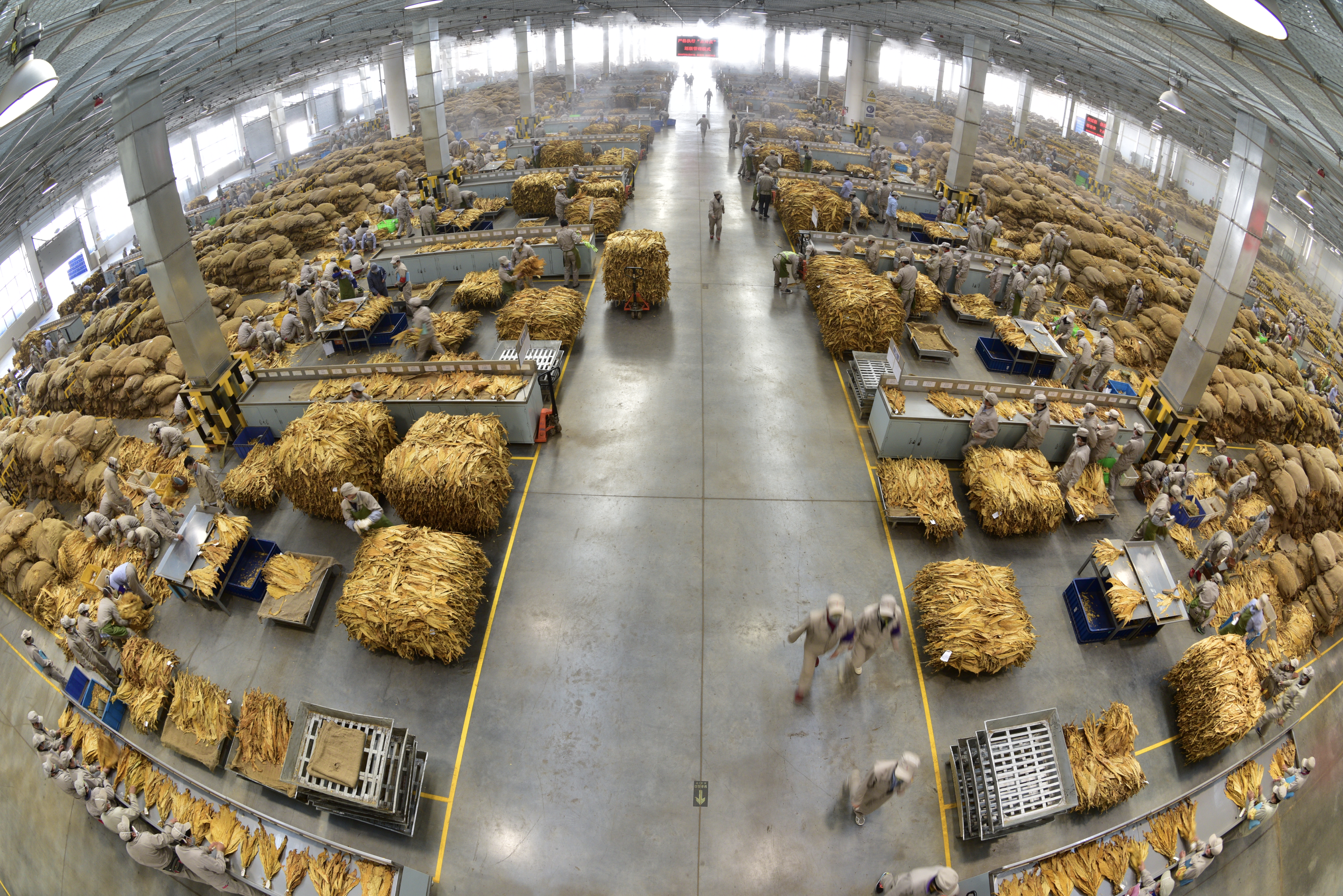 图为云南中烟工业有限责任公司红塔烟草(集团)玉溪卷烟厂复烤一车间原料精选作业现场。(国家烟草专卖局供图)